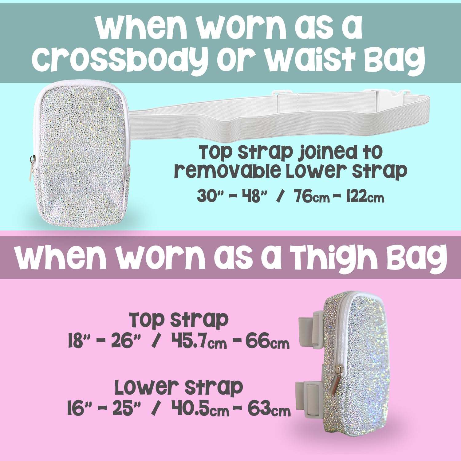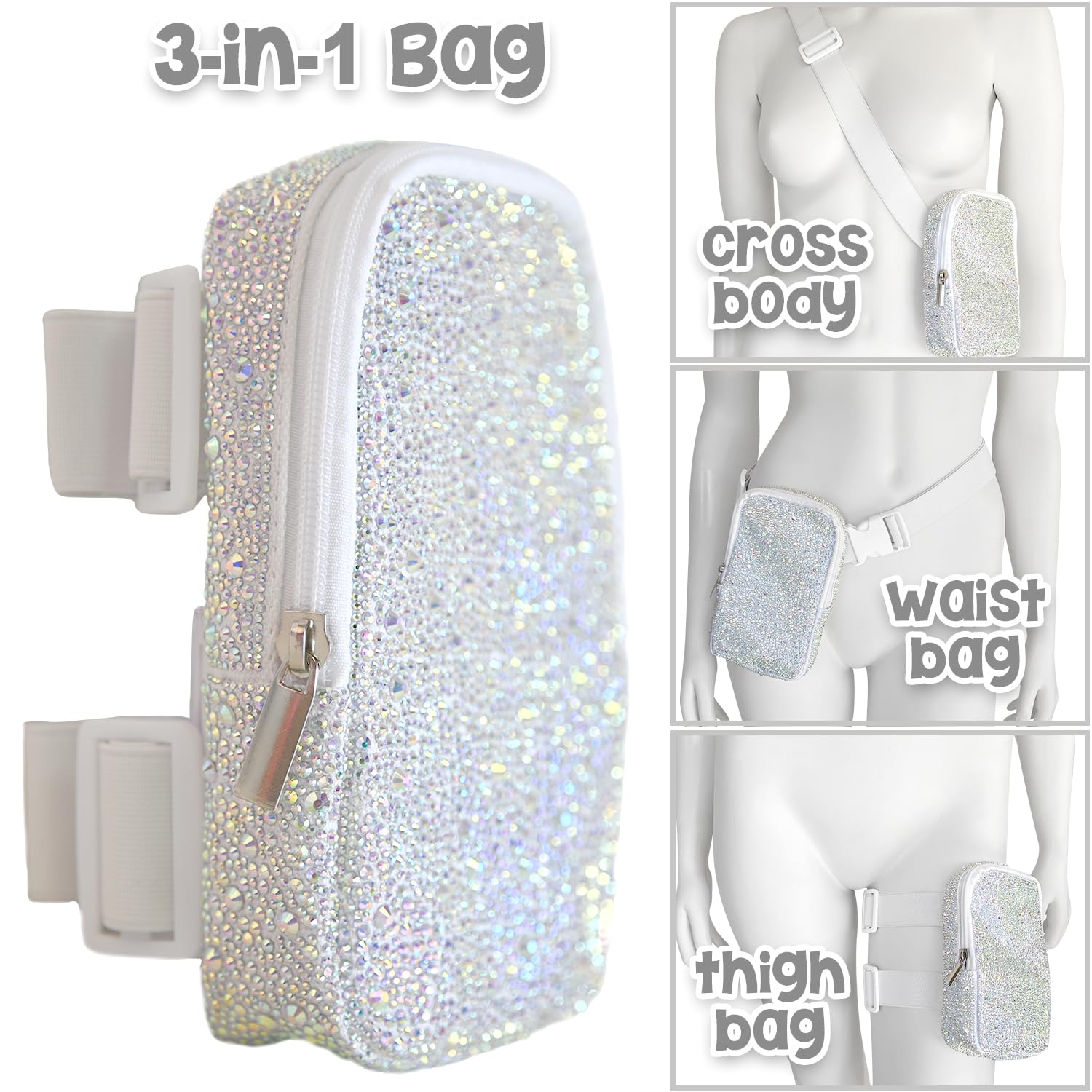 3-IN-1 Thigh Bag Fanny Pack Crossbody Bag | Rhinestone Carnival Leg Harness for Women | Bling Waist Bag | Rave Leg Pack