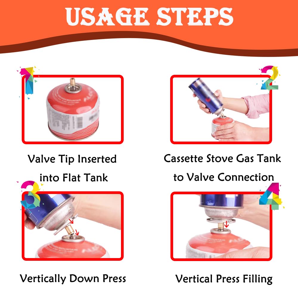 - Easy to use: Simply attach the outdoor brass butanes refill adapter to the gas tank valve and refill your camping stove without any hassle.