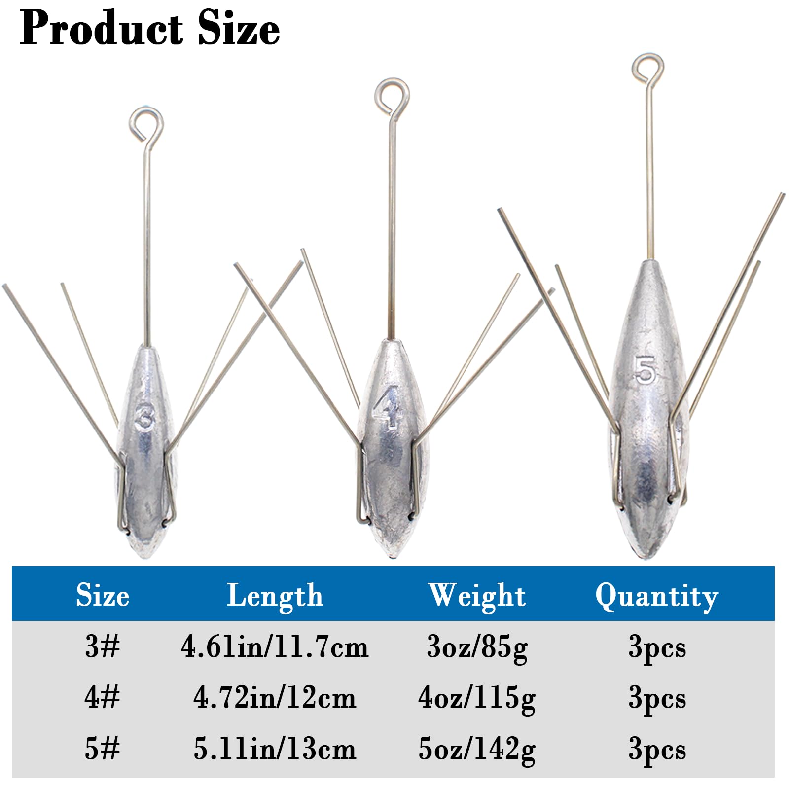 - 【Thoughtful Design】: The surf fishing sinker is designed with 4 stainless steel legs, which can stand firmly in the sand and is not easy to fall, suitable for long-distance casting and easy to use.