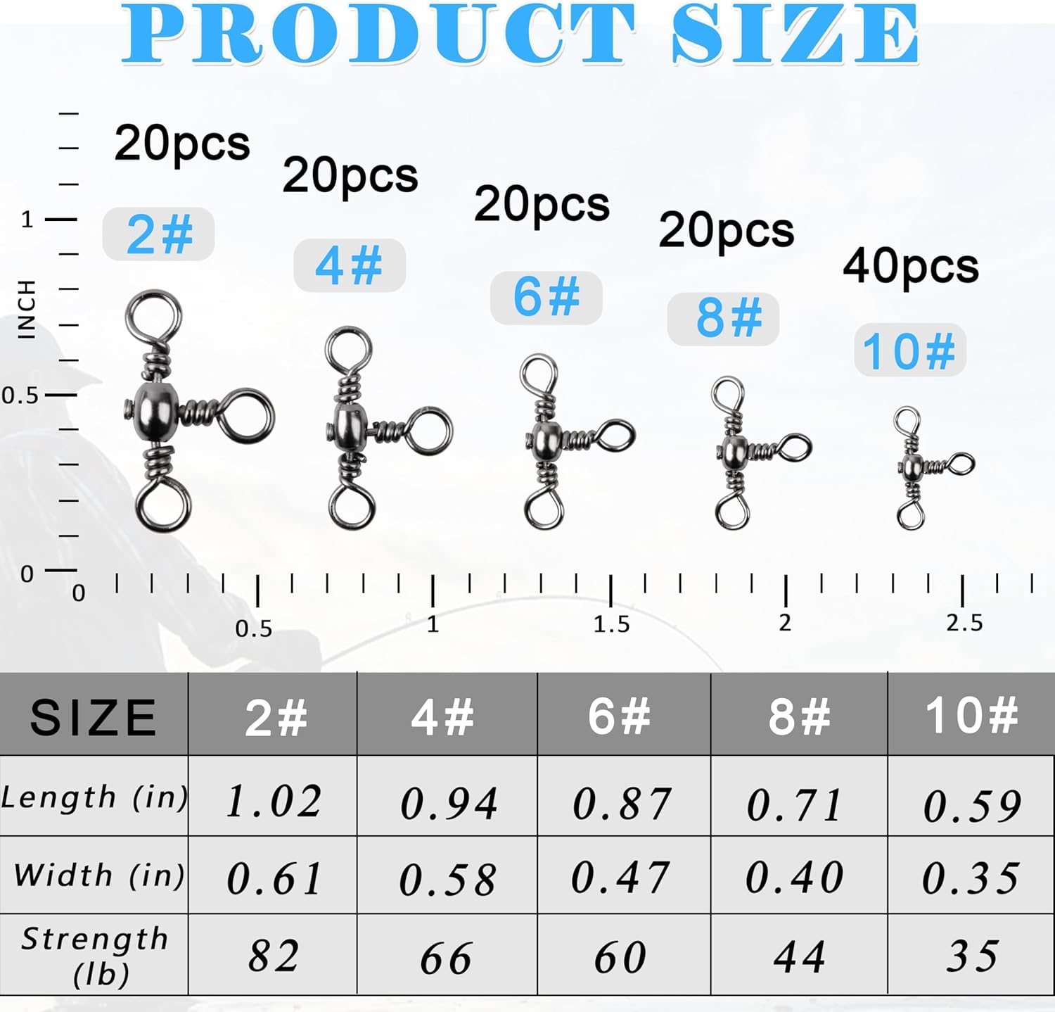 Size 10# - Length: 0.63" - LB TEST:30LB - QTY:40pcs