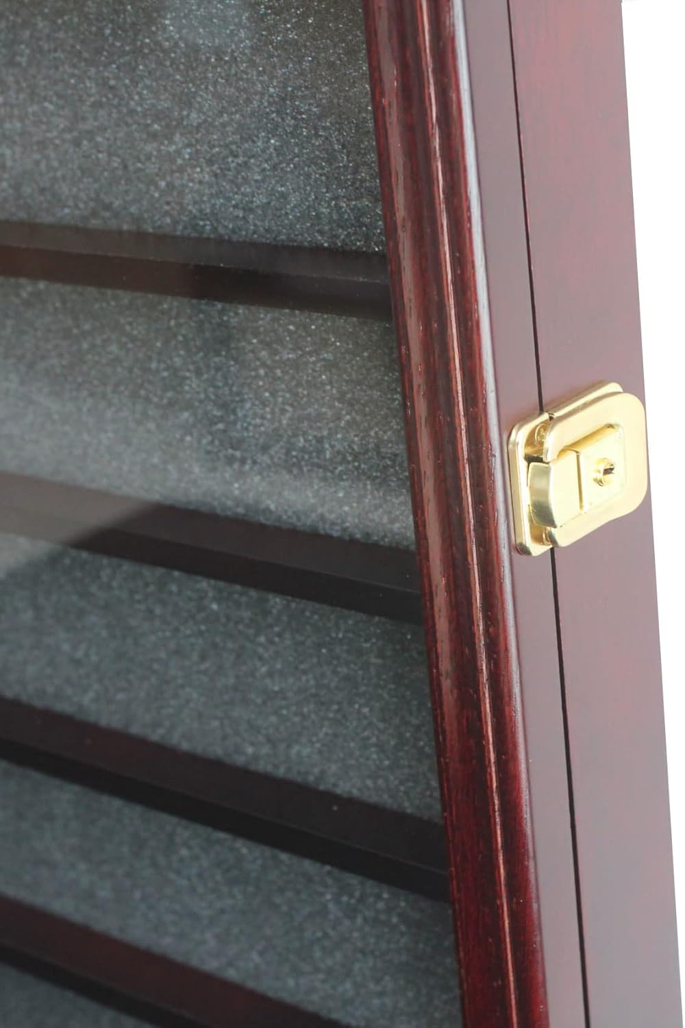 Gorgeous handcrafted small display case. This frame is perfect for sport Lighters and military lighters display. This would hold a collection of 30 sport or military outdoor lighters. Please note that the shelf space does not fit lighters in plastic boxes. The door has a built-in Lock latch with key, to prevent uninvited fingers. Lockable door for easy caring and protection against dust, and be much more scratch resistant comparing to plastic. Metal brackets are already on the back for hanging. Package comes with wall hooks to hang. Dimensions:11.5" W X 14"H X 2.5"D (Outside) Weight (net): 4 lbs Shelves are 2.25" Height, 10" Wide, 1 3/8" Deep. Lighters are not included. DisplayGifts is the brand to go when you are up for high quality wooden frame that are meant for serious collectors or beginners. We have years of experience in providing quality protective display cases for sport memorabilia and fanshop collectibles. Our line of product for sport collectible display include display cases for challenge coin cabinets, knife display cases, and pin display cases, and flag display cases for veterans, and display cases for many different kinds of collectibles.