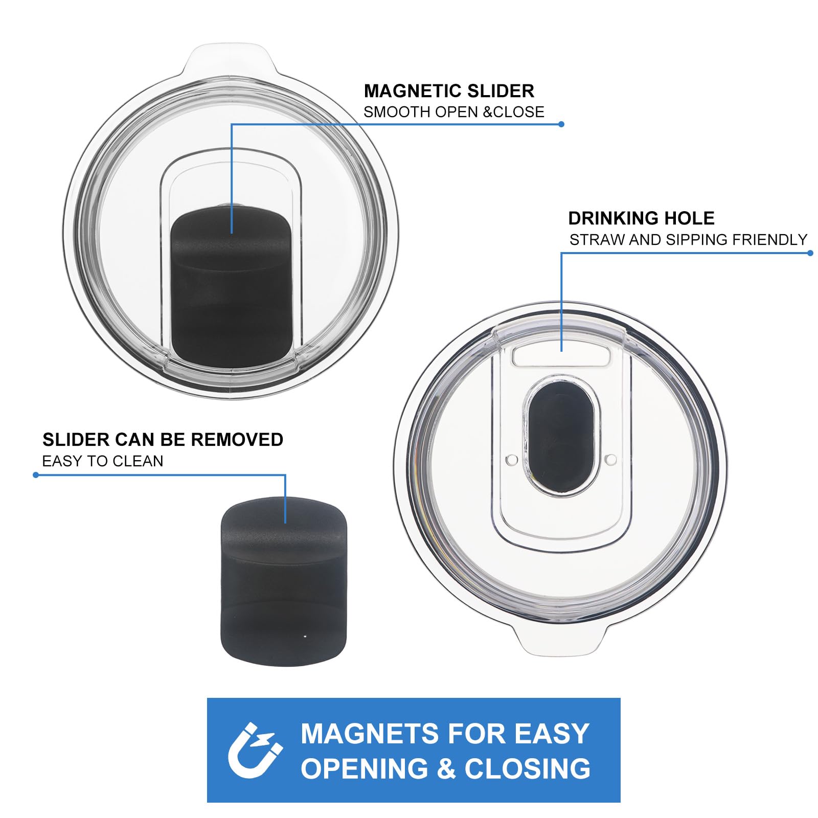 - 【Practical Design】Our 30 oz replacement tumbler lid has magnets slider for smooth and secure opening and closing. Slider is removable and easy to clean.Enjoy your favorite hot or cold beverage!