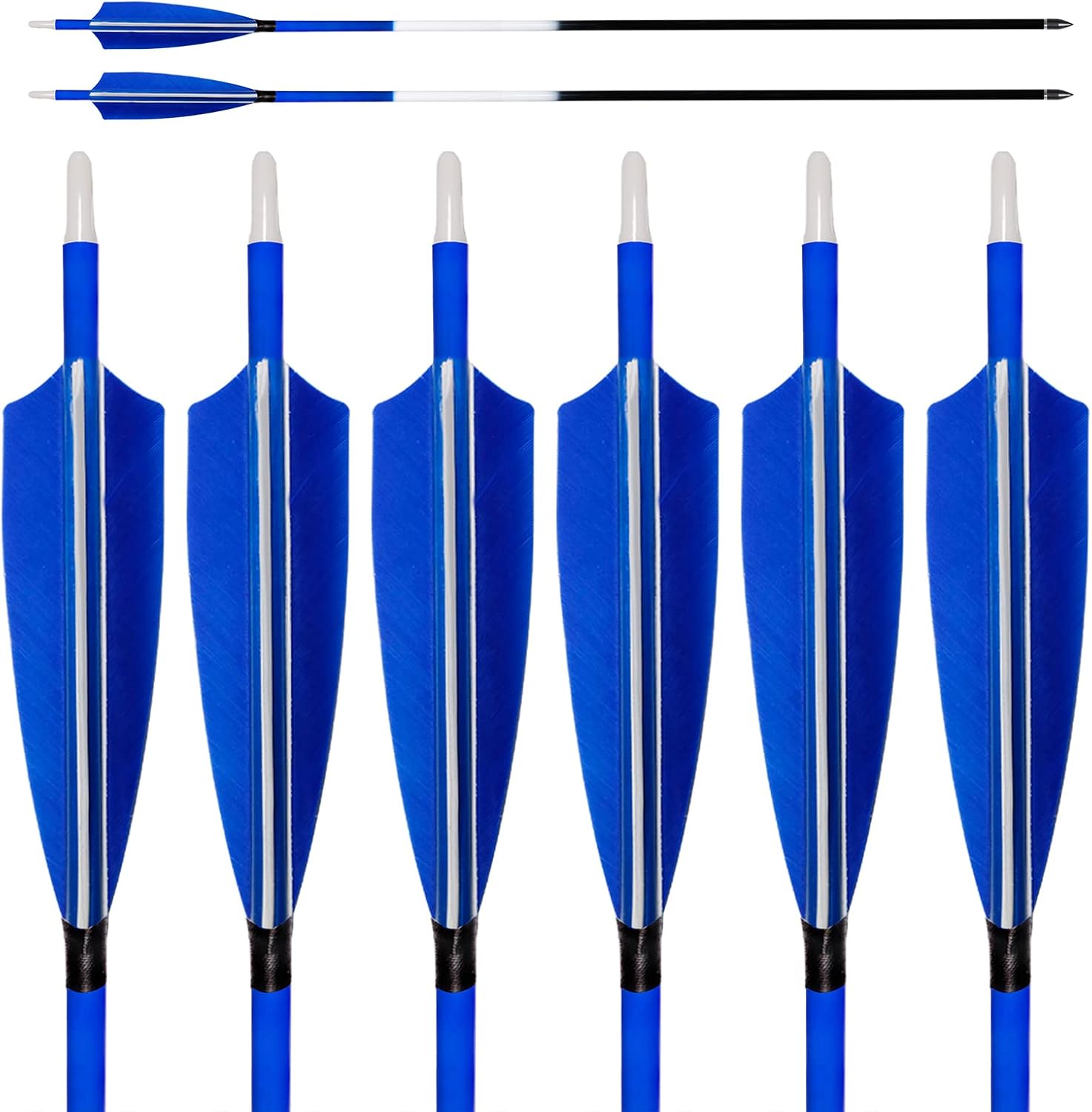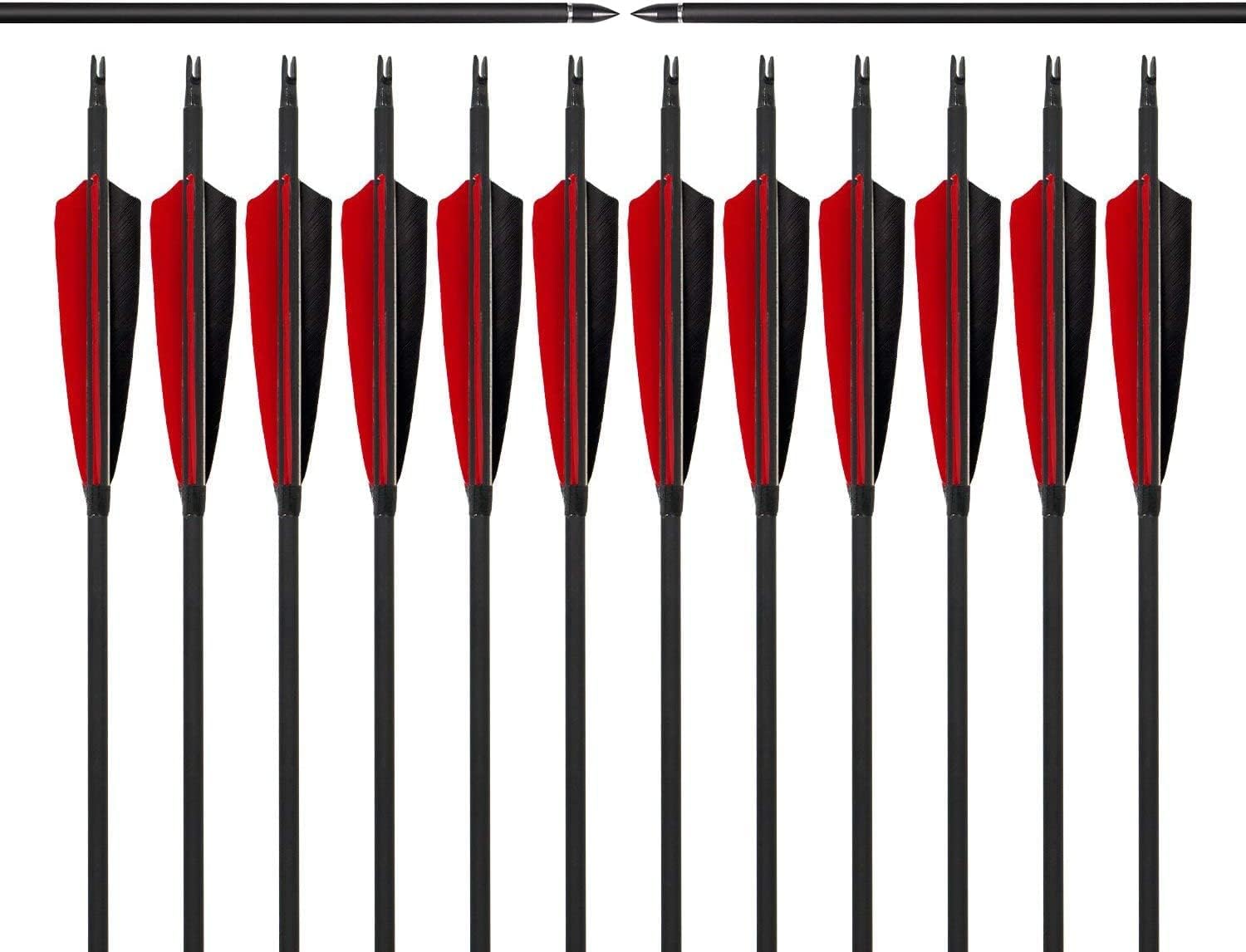 31Inch Carbon Arrows, Targeting Practice Hunting Arrow, Turkey Feather Fletching Arrow, with Removable Tips and nocks for Recurve & Compound Bow