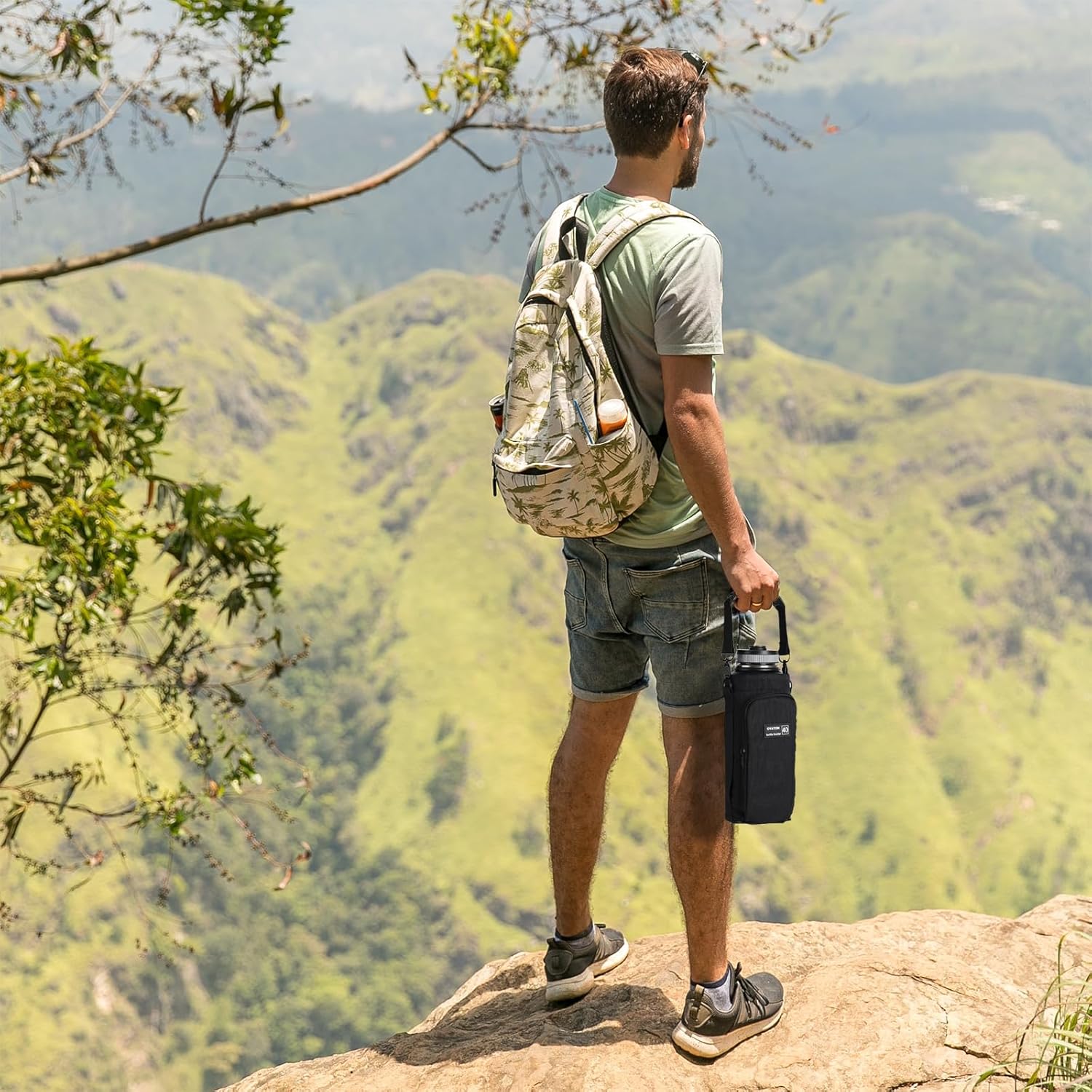 32 oz - 64 oz Black Neoprene Bottle Holder with Strap and Pocket for Walking, Travel and Hiking