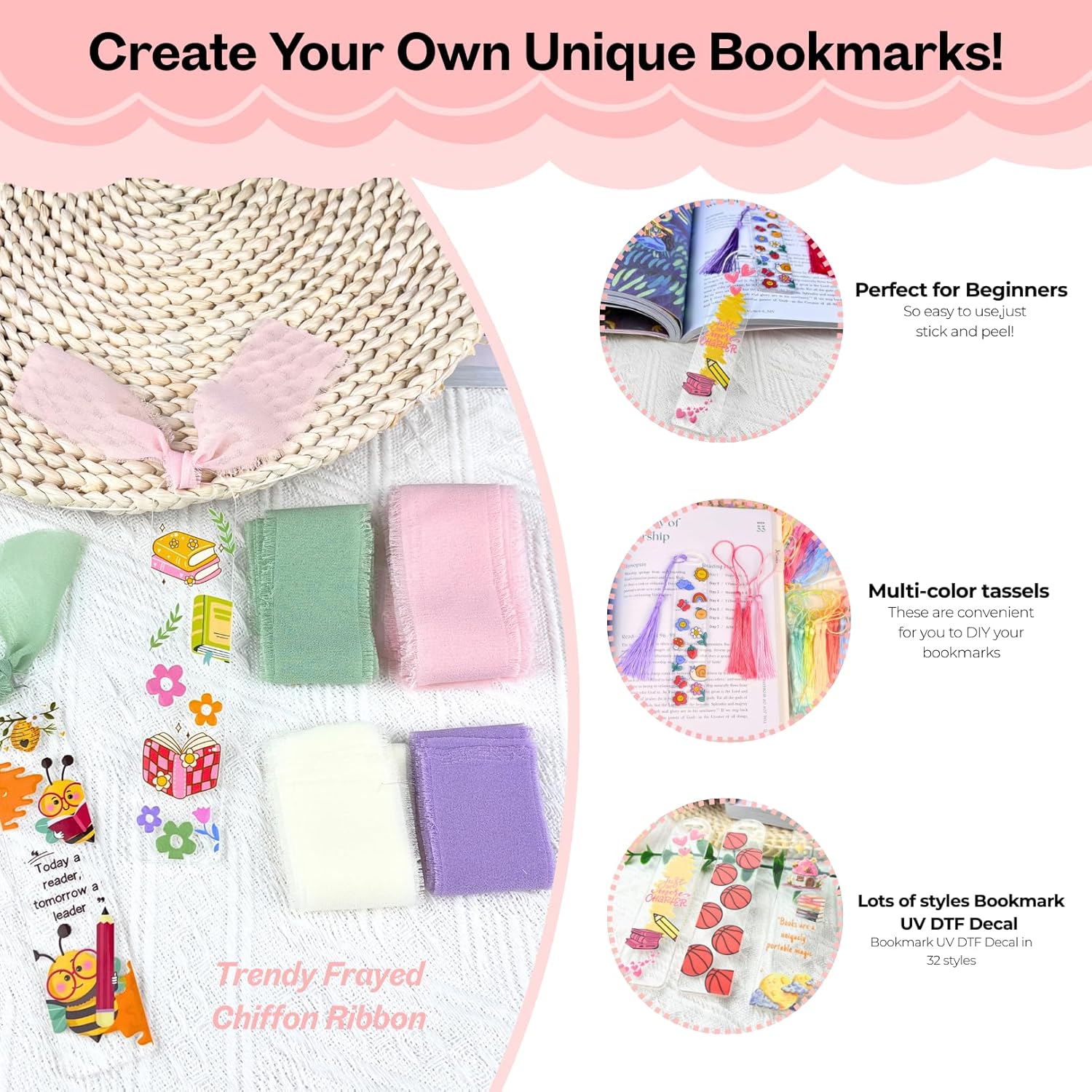 Our bookmarks offer 32 different themes of UV DTF stickers. Convenient for you to choose and DIY your own unique bookmark according to your preferences! I believe this process will be full of fun