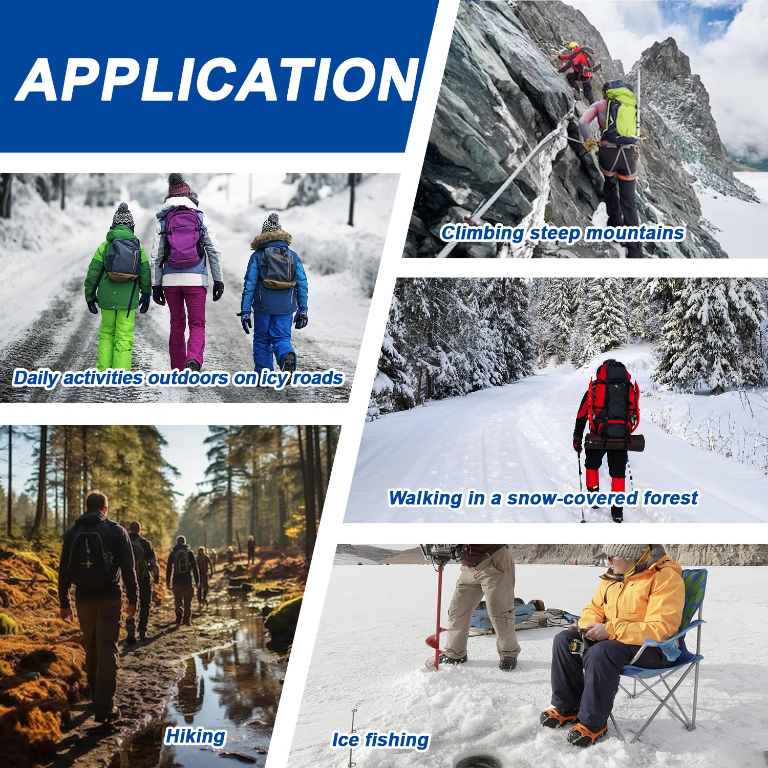 - 【Widely Used】It is suitable for outdoor icy roads, hiking inclined terrain, icy roads, icy driveways, dangerous roads (ice-covered boulders, forest slush, etc.), perfect for winter hiking, running, trekking and ice fishing.