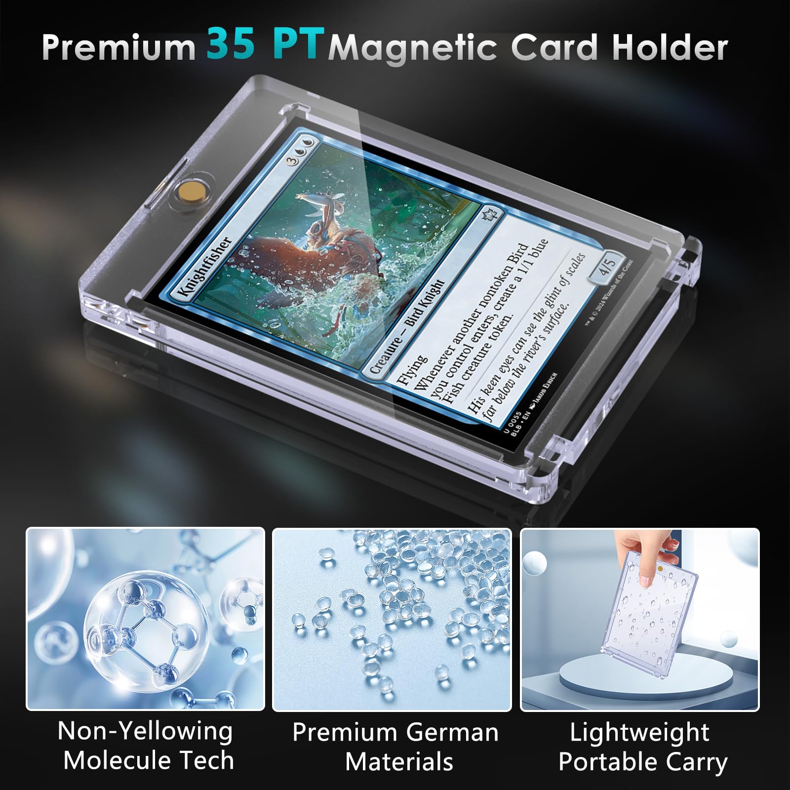 - ✅【MAGNETIC CARD HOLDER FOR TRADING CARDS】: Keep your valuable cards safe and secure with our 35pt magnetic card holders 25 ct.Made from high-quality hard plastic, our magnetic baseball card holders offer ultimate protection from water, moisture, dust, and each magnetic card protector is equipped with a premium U-V coating, preventing fading and preserving the colors of your cherished cards for years.