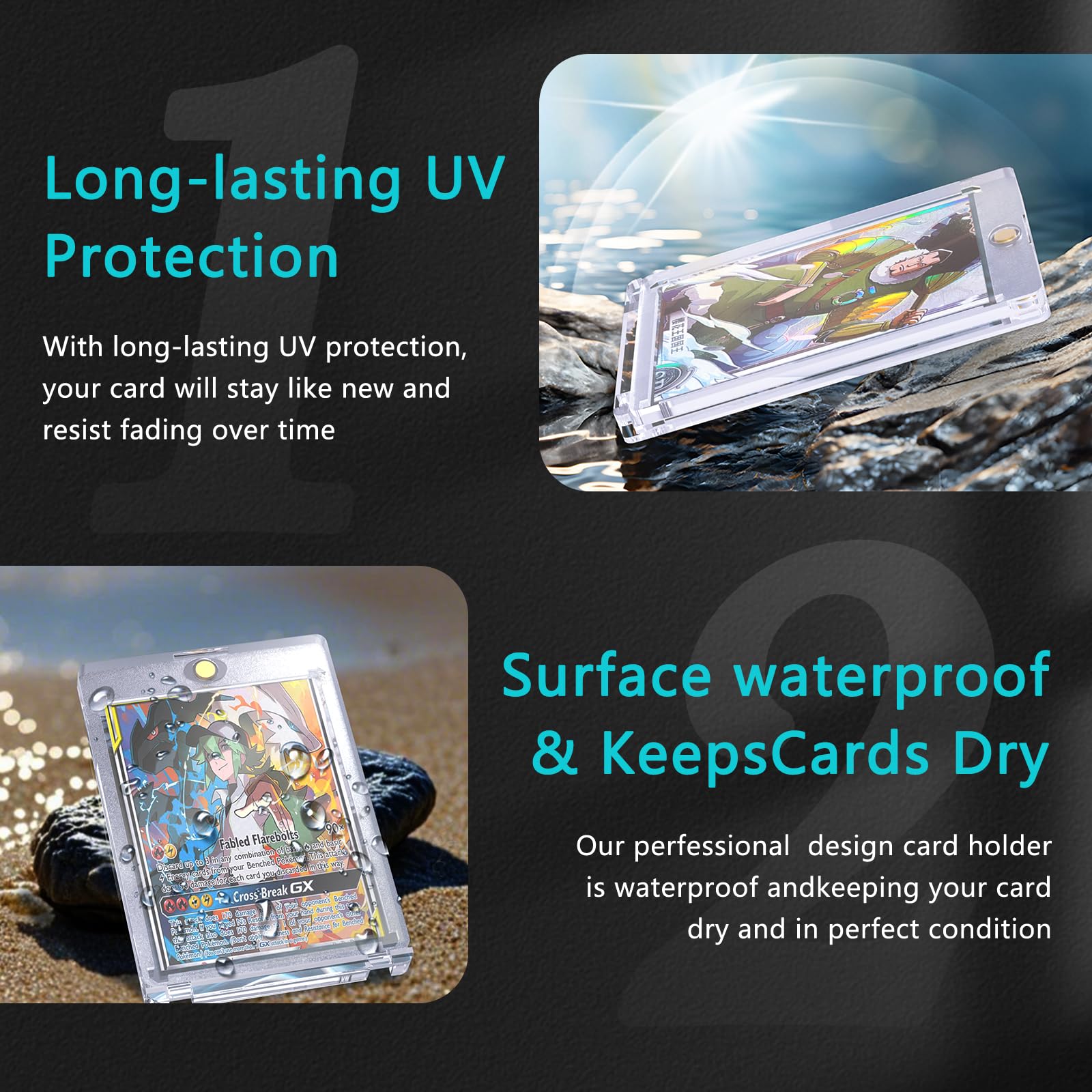 - ✅【YEARS OF SAFETY】: Strong magnetic opening and closing design, diamond corner design can effectively ensure the safety of cards, surface waterproof, prevent bending and cutting. Our card protector is made of thick 35pt top loads that are strong enough to keep your cards safe for years. It is the best choice for card protection.
