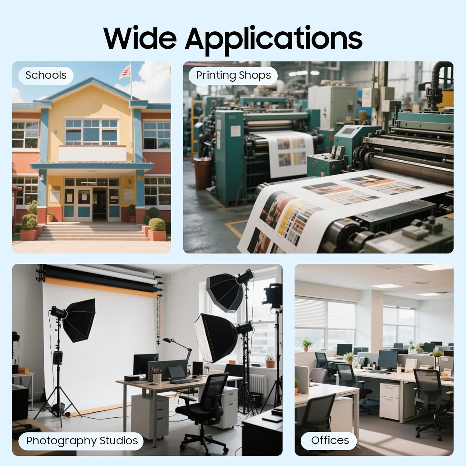 - Application: Our paper cutter is suitable for cutting A3, A4, and A5 paper, photos, cards, decals, and cardboard(within 1mm), labels, card stock, pictures, laminated sheets(within 0.4mm), and PVC film(within 0.3mm). It is ideal for teachers, designers, and hobbyists at home, office, and school.