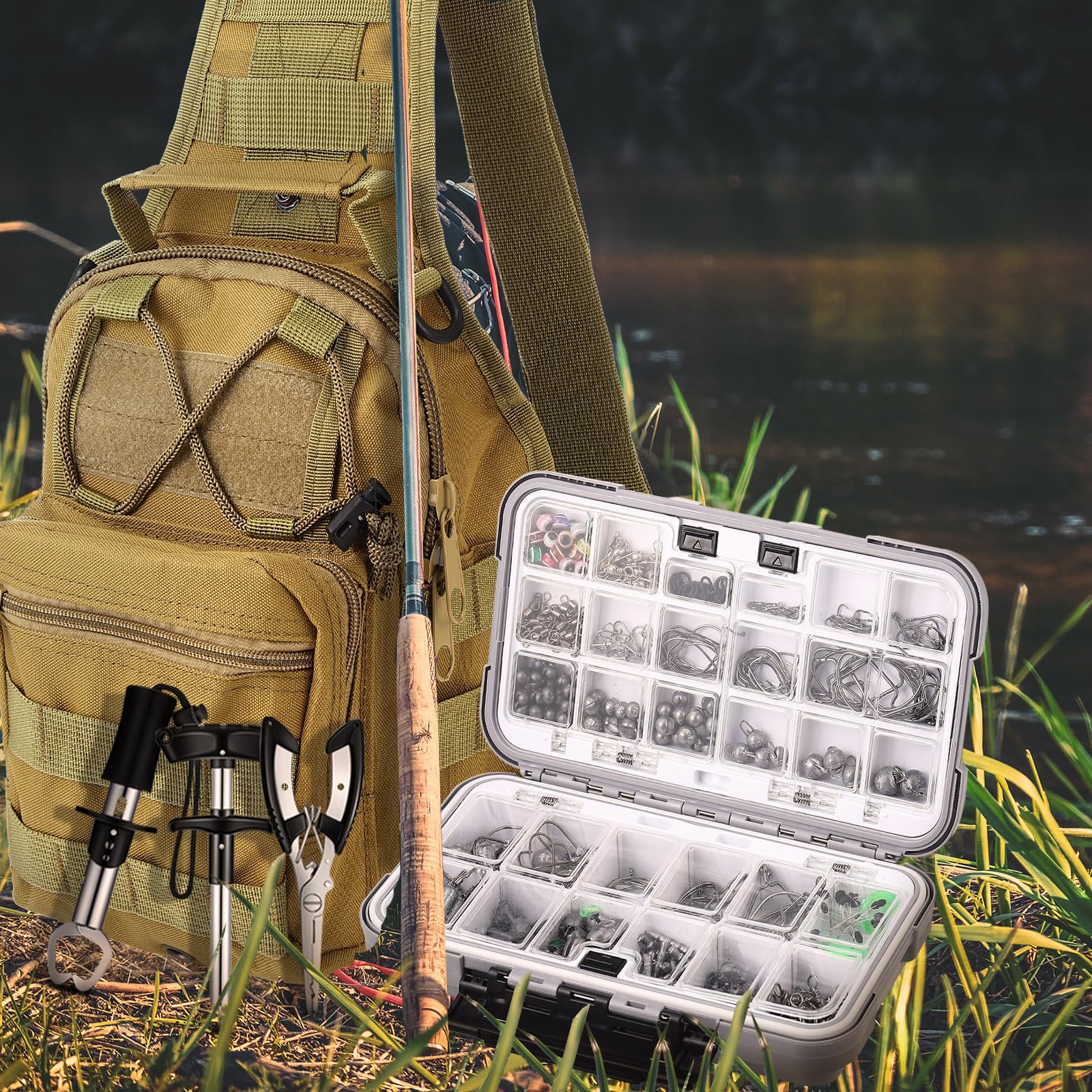 - Fishing Tackle Kit: you will get 397 pcs of fishing tackle equipped with 12 fishing gears; It including hooks, round leaders, round split leaders, egg pendants, swivel pendants, leading weights, fishing weights, nail weights, Neko pendants, fishing snaps, 4 different fishing swivels, fishing pendant sliders, fish eyeballs, rings, and float stoppers, a fishing rucksack, fishing clips, fishing scales, fishing pliers, a fishing lanyard, a hook, a fishing reel, and a fishing reel with a fishing hook