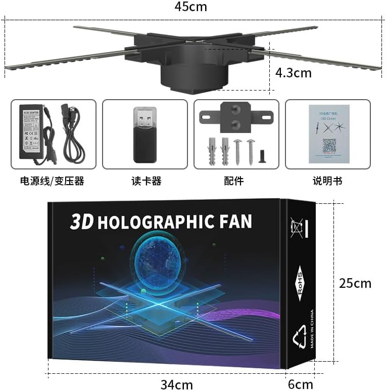 - 3D Hologram fan Display, Show Every Detail Clearly: Equipped with 4 high-brightness LED blades, providing clearer and smoother 3D holographic images. Whether for advertising or home decoration, the upgraded image quality enhances your content, far surpassing traditional screens