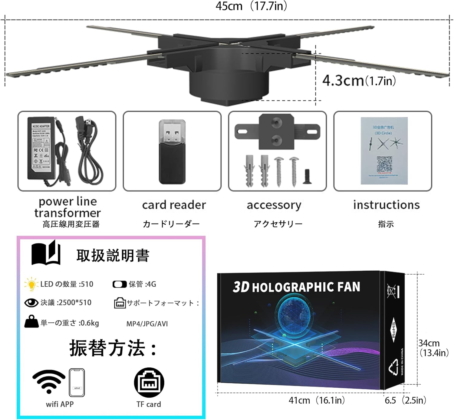 - led hologram fan, Fits Any Space: The 45cm (17.7 Inches) size is compact, taking up little space while still attracting attention. It’s perfect for retail stores, small events, or home settings—whether in window displays or as a tabletop decoration, it integrates seamlessly