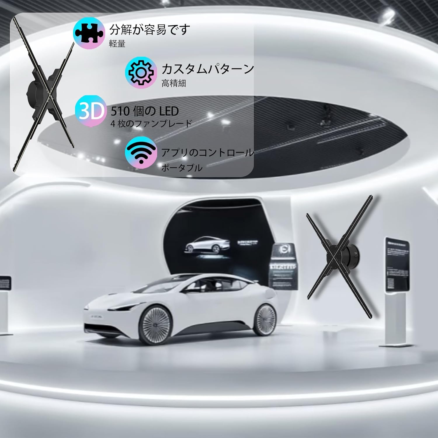 - 3d hologram led fan sign, Long-Lasting Performance: The high-efficiency LED beads ensure bright and stable displays while reducing energy consumption, saving on operating costs and ensuring longevity for long-term use