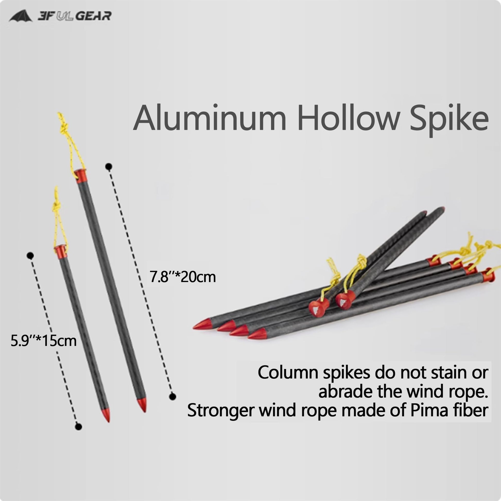 - 【Ultralight & two size】: Weighing only 9 grams/0.01LBS and 12 grams/0.02LBS per peg, it doesn’t add unnecessary weight to your pack. Both 15cm/5.9'' and 20cm/7.8'' are long enough to make tents firmly grasp the length of the ground. Spike diameter 8.5mm/0.33''.