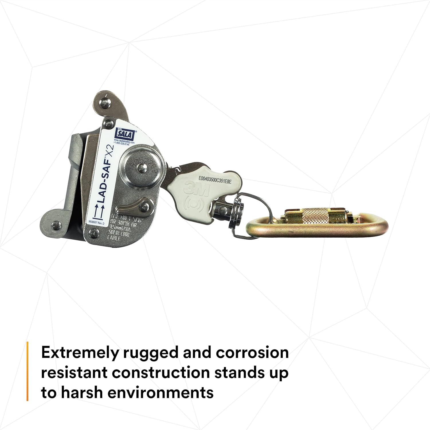 3M DBI-SALA 6160030 Lad-Saf Sleeve with Carabiner, Cam and Inertial Locking Fits 3/8"" and 5/16"" Diameter, Silver