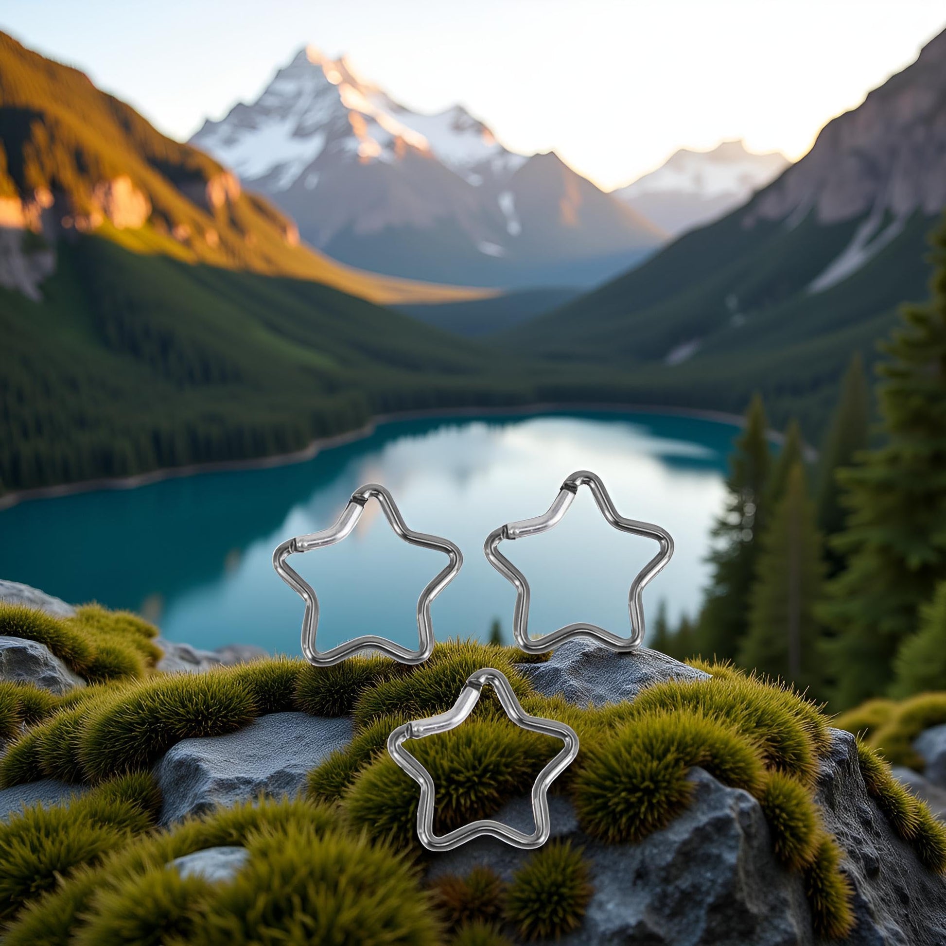 3Pcs Silver Carabiner Clip Star Shaped Climbing Buckle Aluminum Alloy Heavy Duty Keyring Hook for Camping Fishing Hiking Traveling Spring Loaded and Keychain Carabiners Accessories,Outdoor