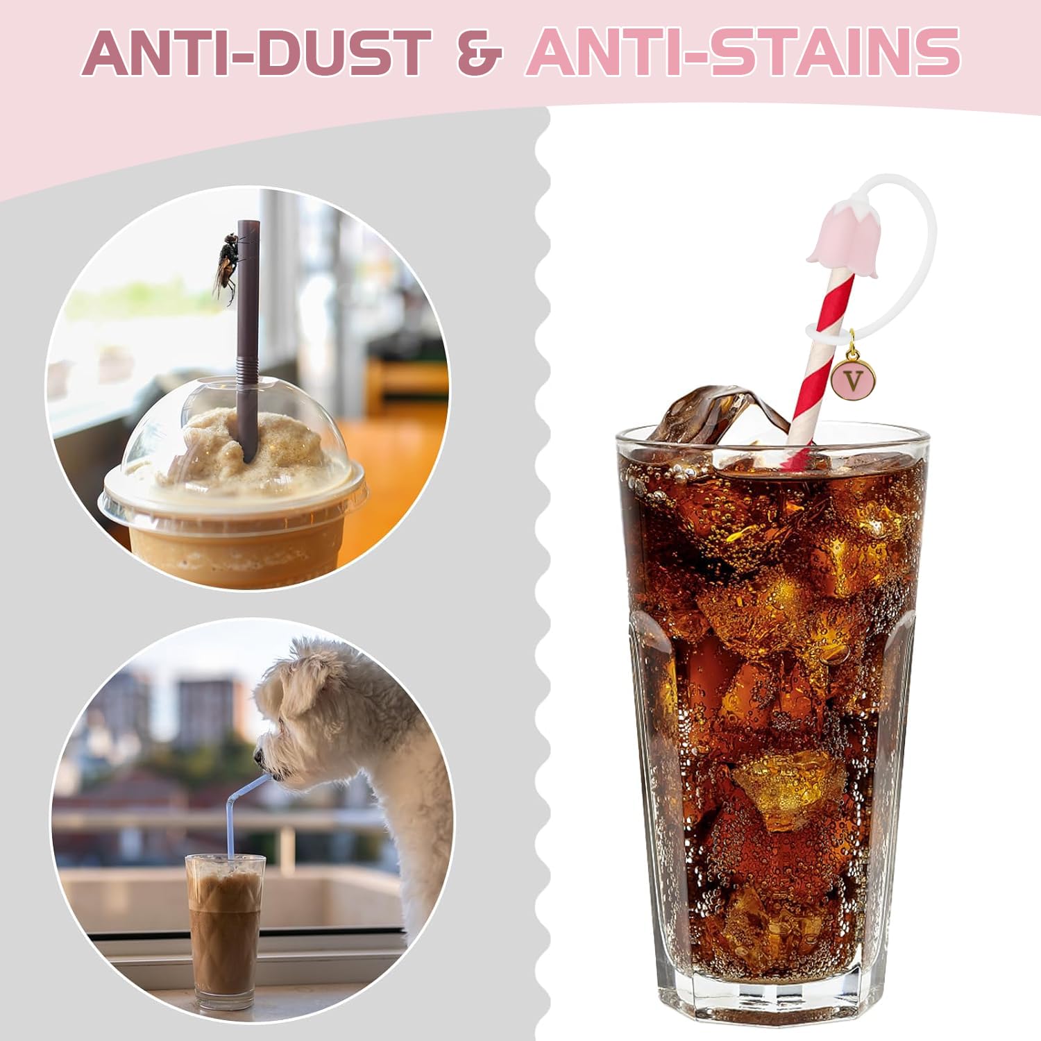 - 【3 Pcs Tulip Straw Caps with Little Charm】The 3 pack of straw caps come in white, purple and pink. You can match them to your outfit or to your cup. The charm adds such a personalized touch, you will always know whose cap belongs to whom. They fit super snug on the straw and don’t slide up and down when you take a drink