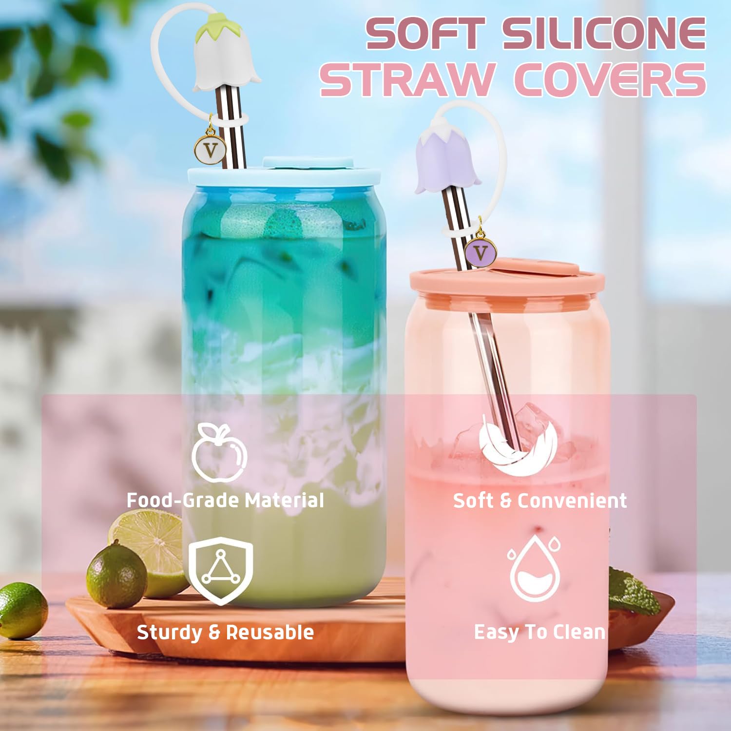 3Pcs Stanley Cup Straw Cover Toppers With Letter Charm, 10mm Silicone Tulip Flower Covers Lid for Stanleys Cups, Water Bottle, Simple Modern, Yeti, Hydroflask, Owala 30 40 oz