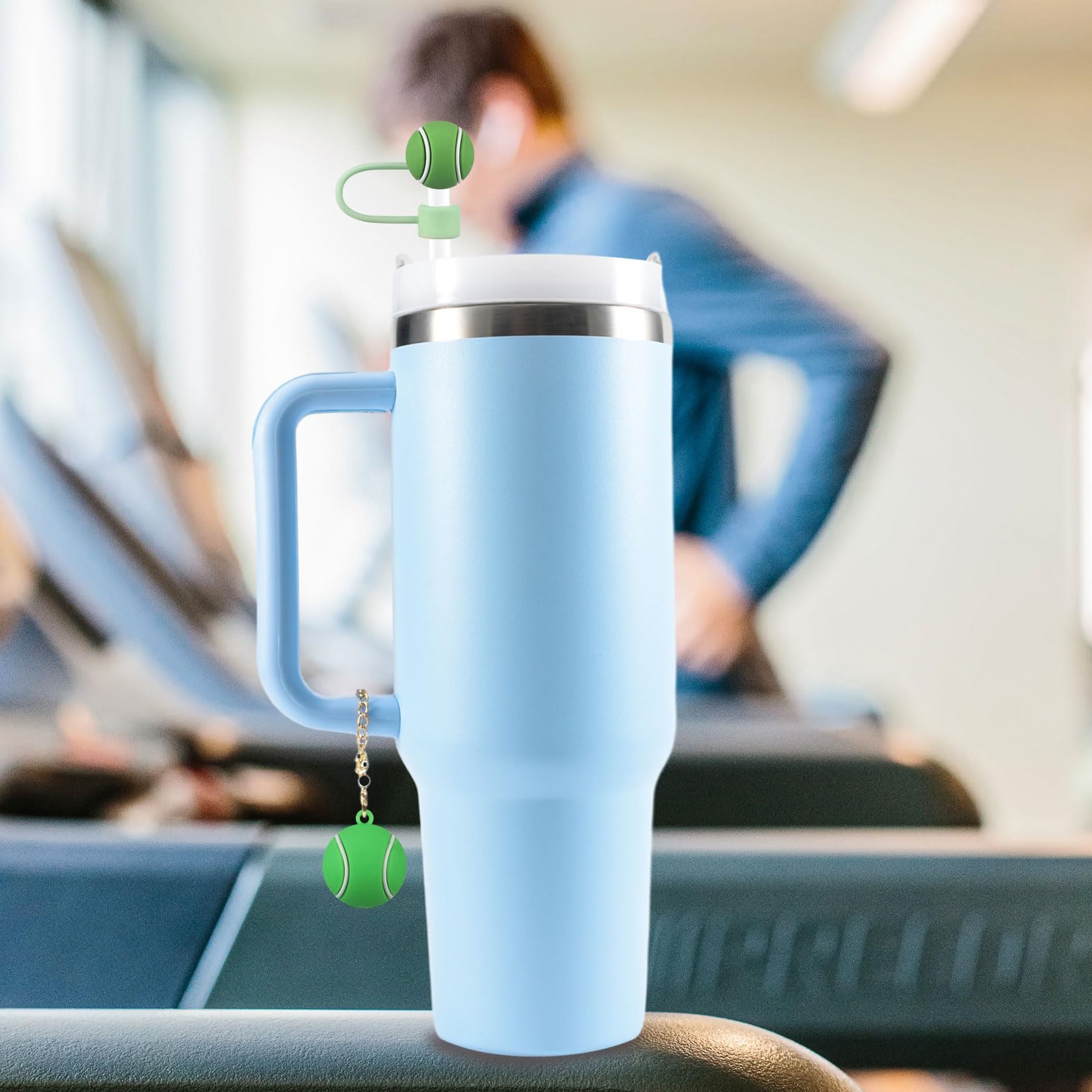3PCS Straw Cover for Stanley Cup 30&40 Oz 10mm Silicone Straw Topper Protector Lid with 1PCS 3D Personalized Tennisball Charm Stanley Tumblers Accessories (3pcs Tennisball +1pcs Tennisball Charm)