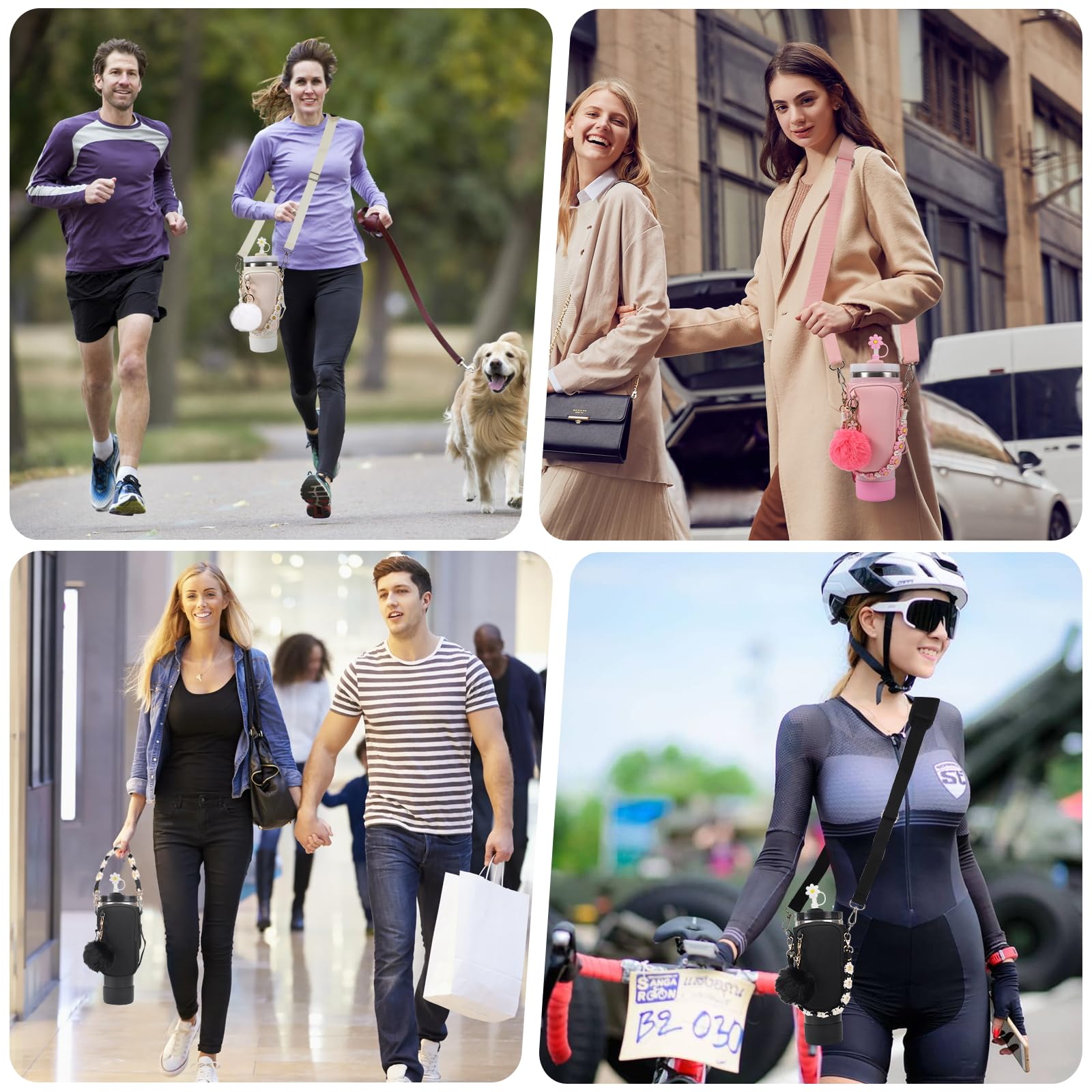 - Portable and hands-free: You can carry our water bottle holder in three ways, with a detachable handle and adjustable shoulder strap,you can carryable on both sides,hand carry or Crossbody,our handbags are suitable for all body types