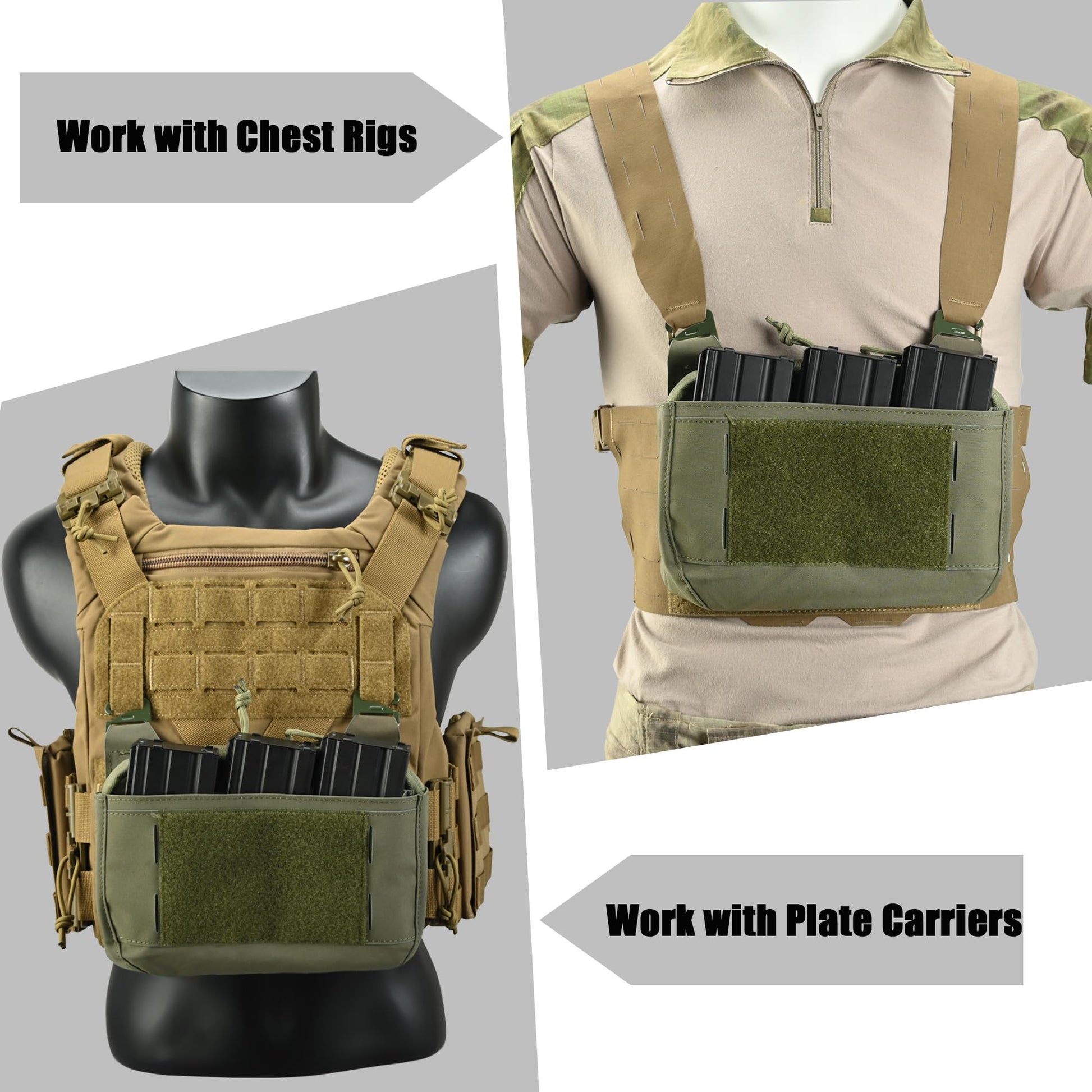 4-in-1 Front Flap Pouch G Hook,SABADO Tactical Elastic Triple Mag Pouch 5.56, Kangaroo Insert Divider Placard for Chest Rig and Vest