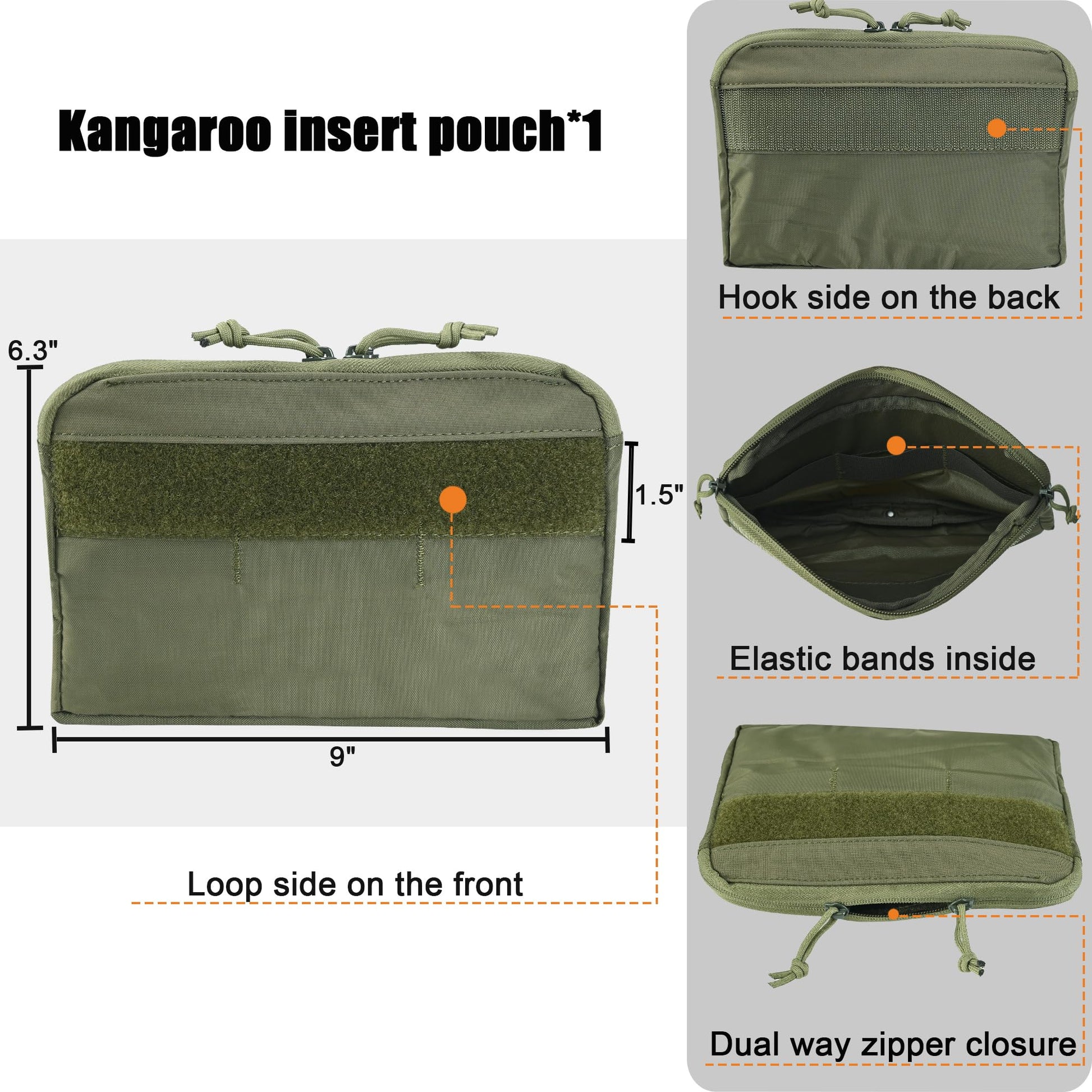 - Kangaroo Insert pouch size:23*16cm/9"W*6.3"H,This utility pouch can serves as a GP pouch,which can carry batterys,chemlight,markers or other items