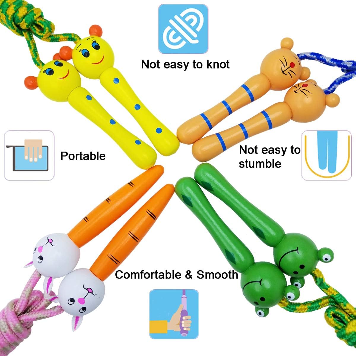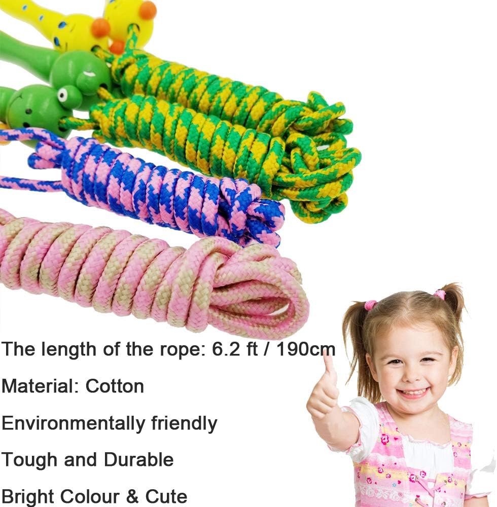 4 Pack Jump Rope with Wood Handles for Kids - Skipping Rope Great for Children and Students Outdoor Fun Activity, Party Favor, Recreation and fitness Keeping Fit.