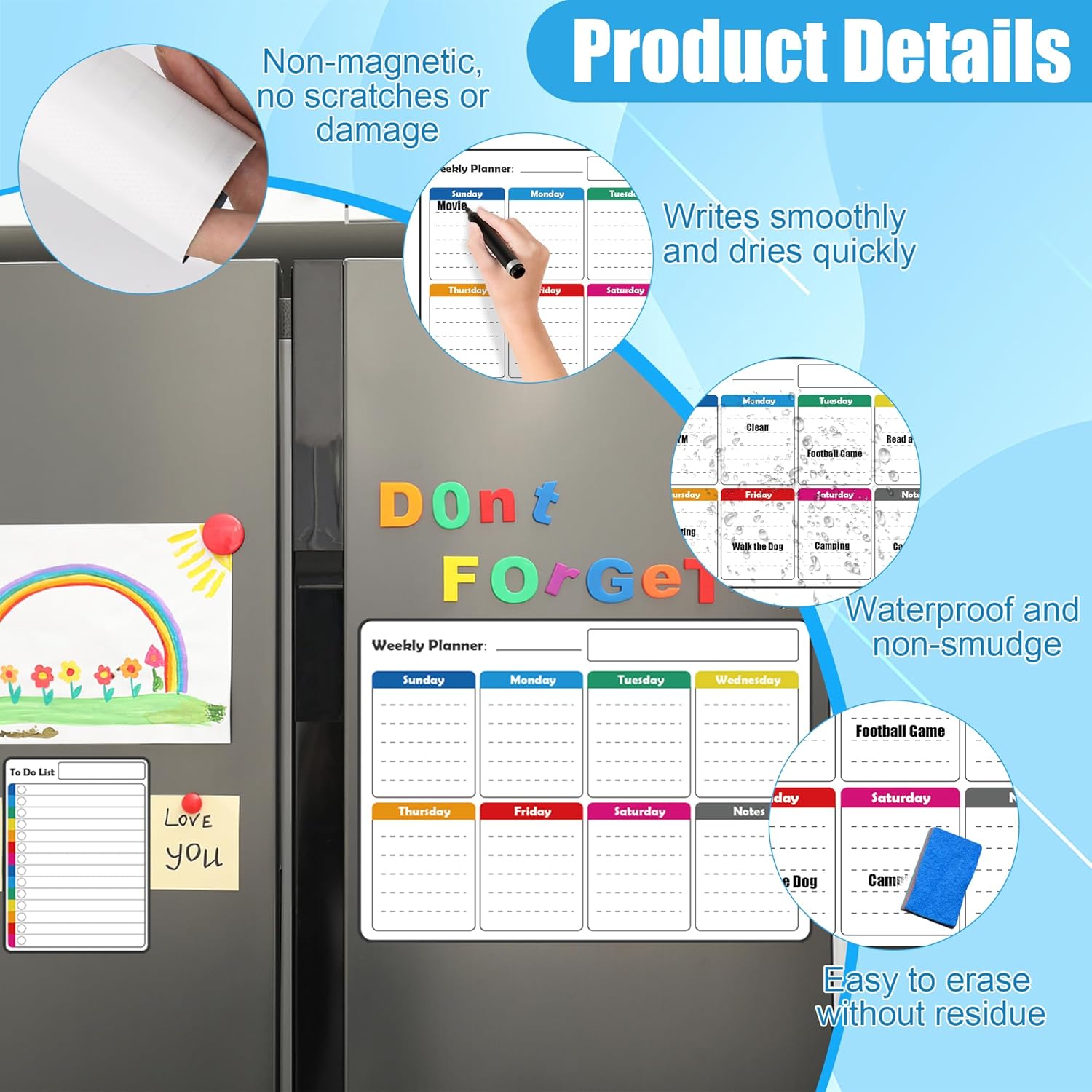 - 【Wide Application】The dry erase calendar board set is not only suitable for refrigerators, but also for walls, doors, tables, whiteboards, as well as offices, classrooms, training rooms and other places