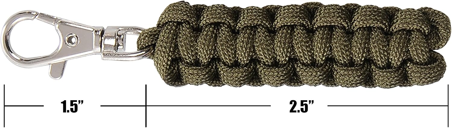 - With a total length of 4 inches (1.5 inches of lobster clasp and 2.5 inches of paracord), it's a perfect addition for backpacks, tents, jackets, pants, boots, duffle bags and many other items that have zippers.