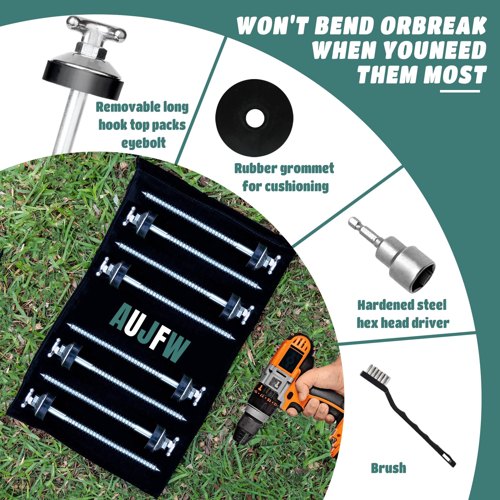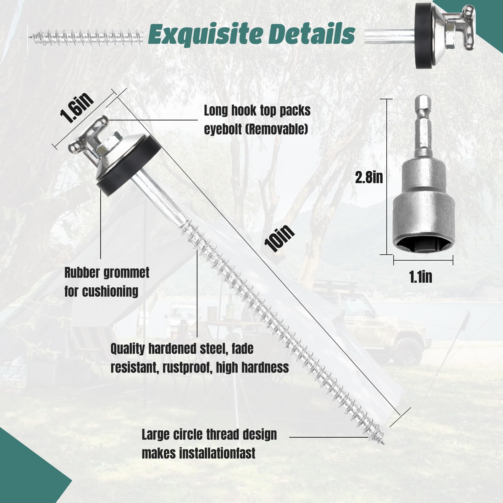 - Ease Of Use:Metal hook tent stakes designed to be used with a cordless drill or impact driver, makes installation and removal process fast, no matter what terrain go in just as easily as they come out can.They are perfect for use through "O" or "D" rings at the base of tents, canopies, awnings or any other product that has an opening of 10mm or larger, firmly support your outdoor equipment