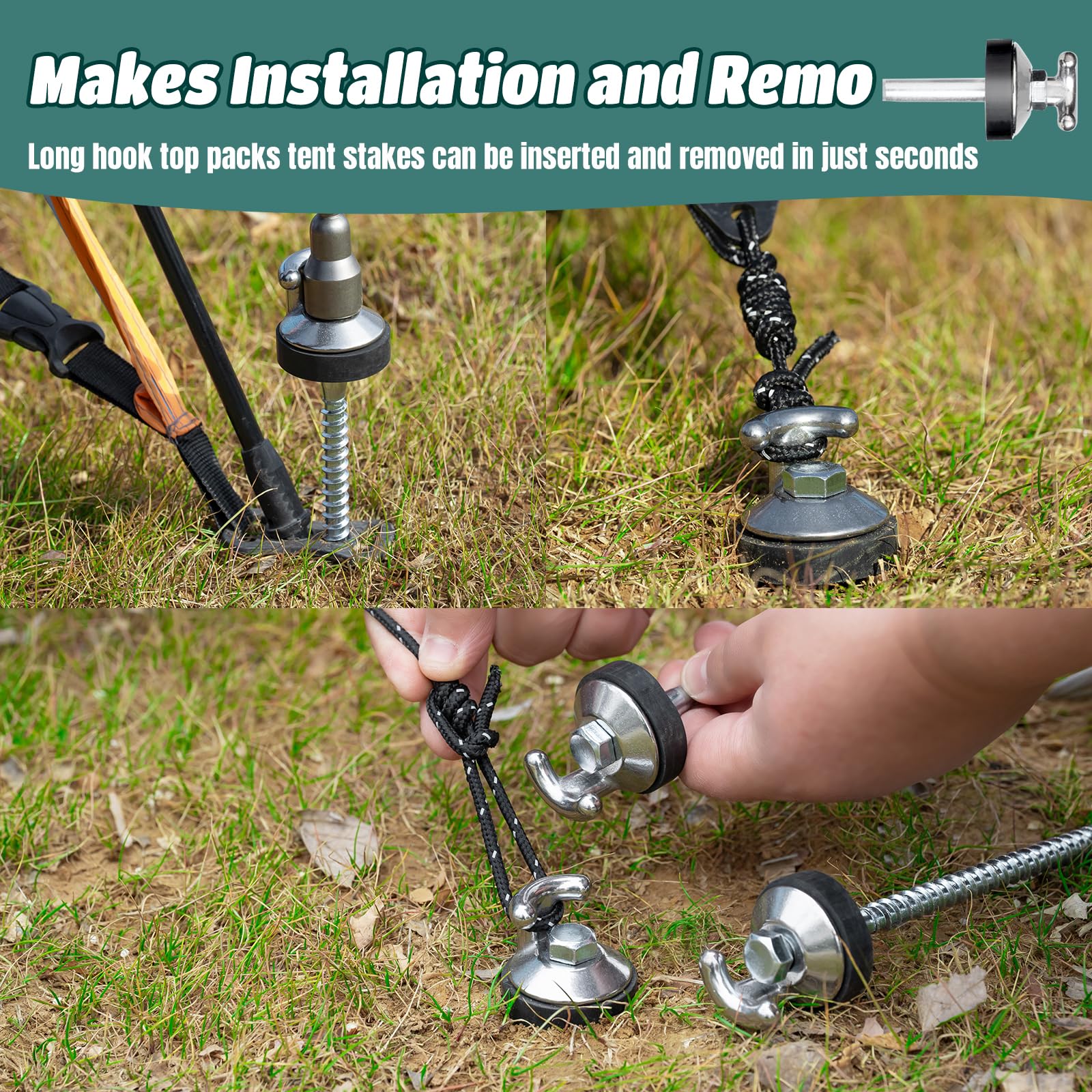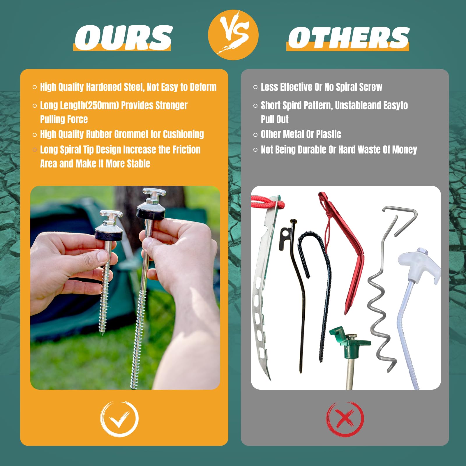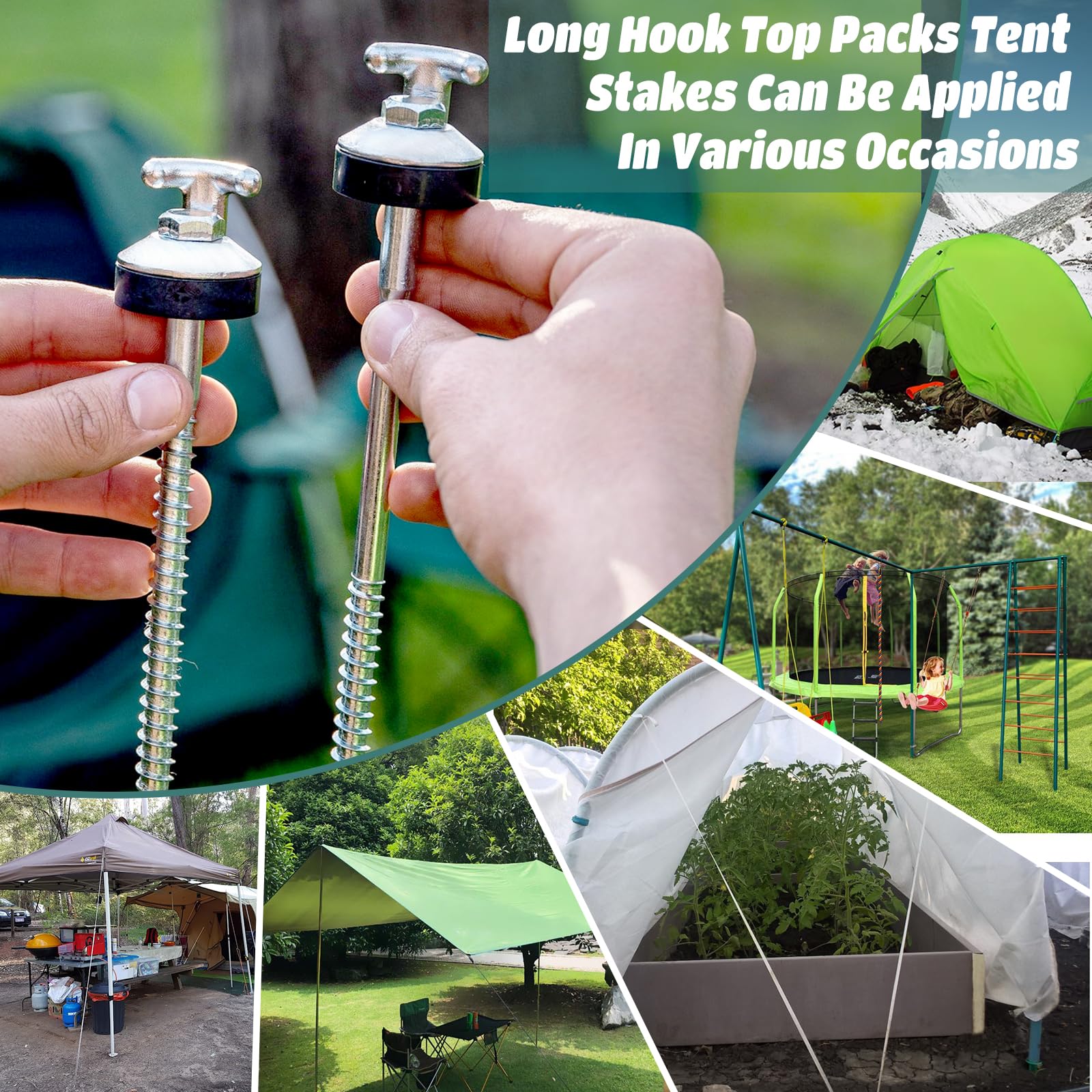 - Strength and Security: Drillable threaded tent stakes is spiral tip and long hook top packs design, provides excellent grip and stability within any ground type. Ordinary tent stakes simply don’t provide the same level of security or stability