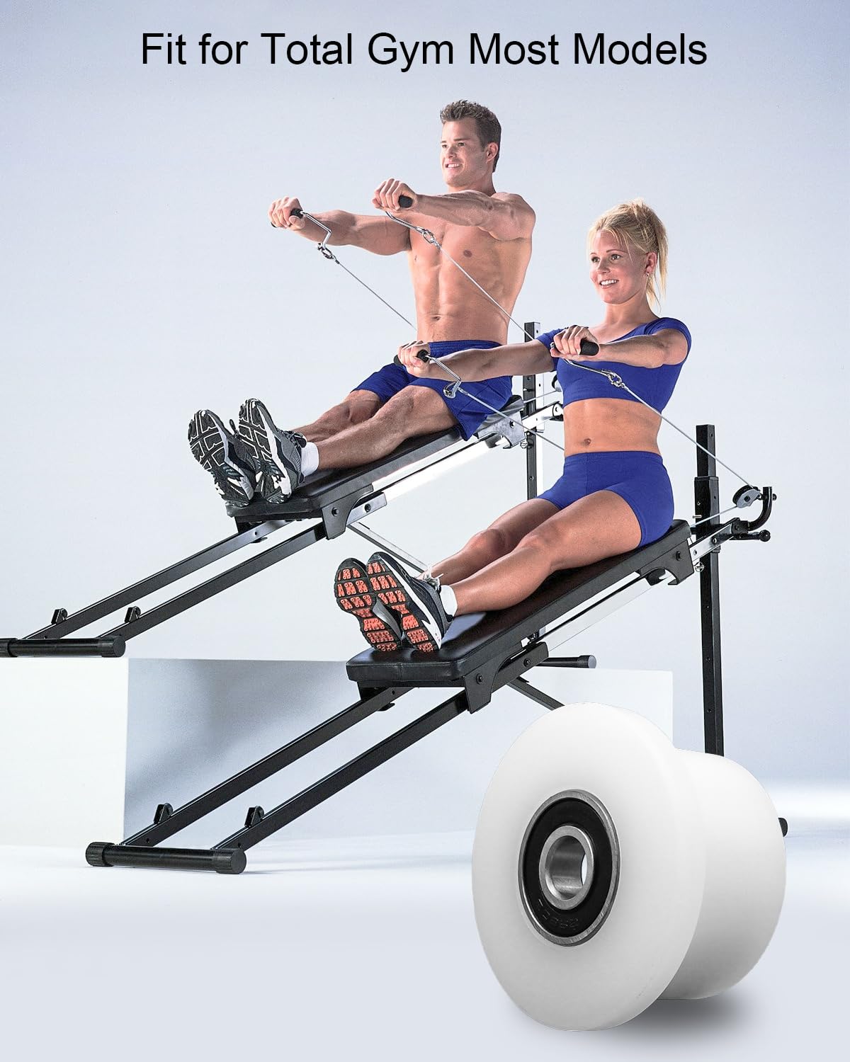 - Extensive Compatibility: Replacement machined wheels fit for Total Gym including 1000, 1100, 1400, 1500, 1600, 1700, 1800, 1900, Achiever, Core, Elite, Force, Gold, Gold Plus, Max, Platinum, Platinum Plus, Power Platinum, Premiere, Pro, Supra, Supreme, Ultima, Ultra, X-Force, and XLi.