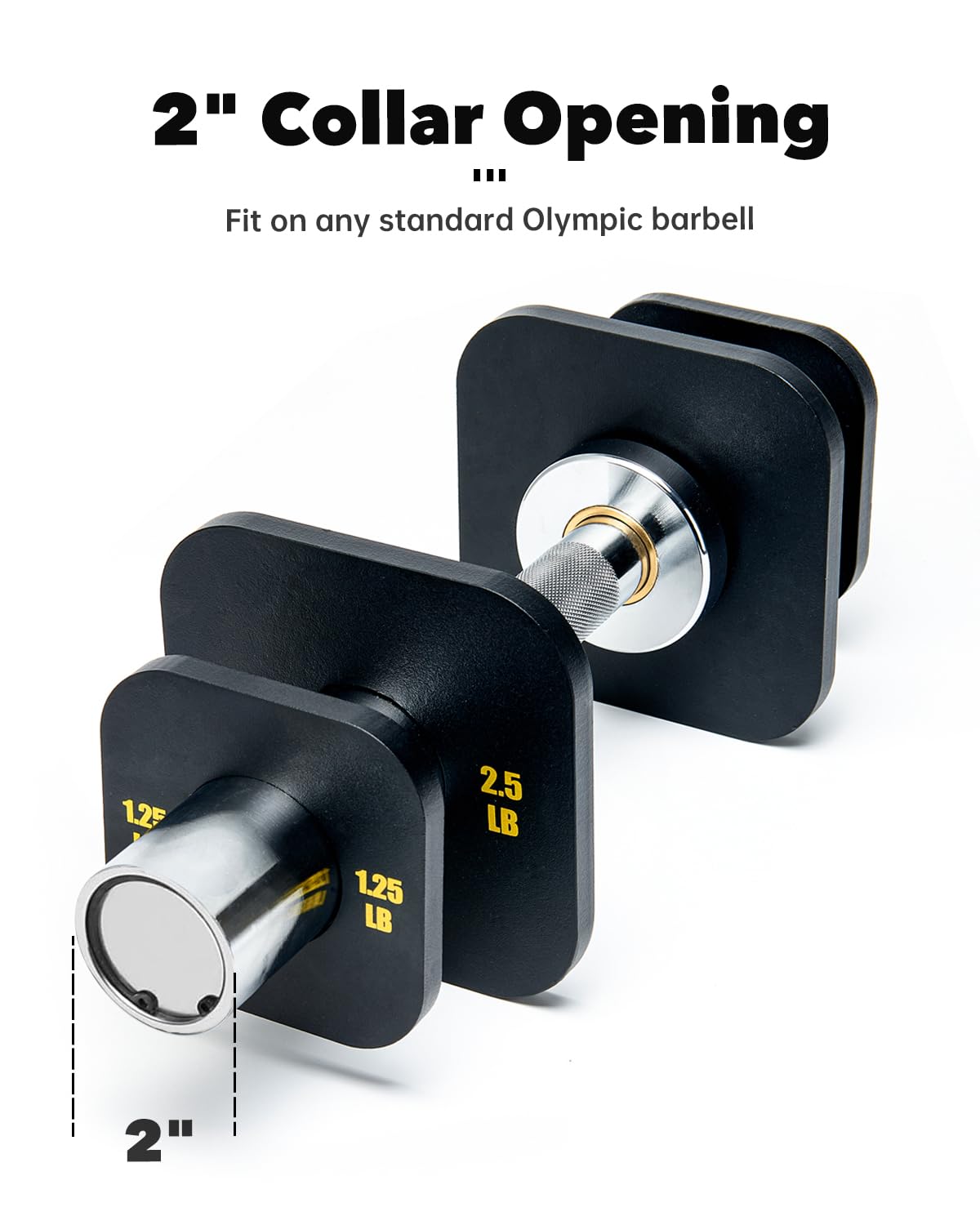 - Every Fraction Counts: This set provides 2.5LB and 5LB barbell leaps and allows you to make small jumps to inch toward that next one rep max. Ideal for upper body exercises like bench press, shoulder press and bicep curl.