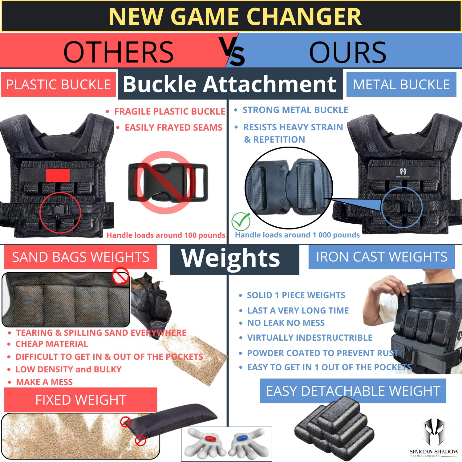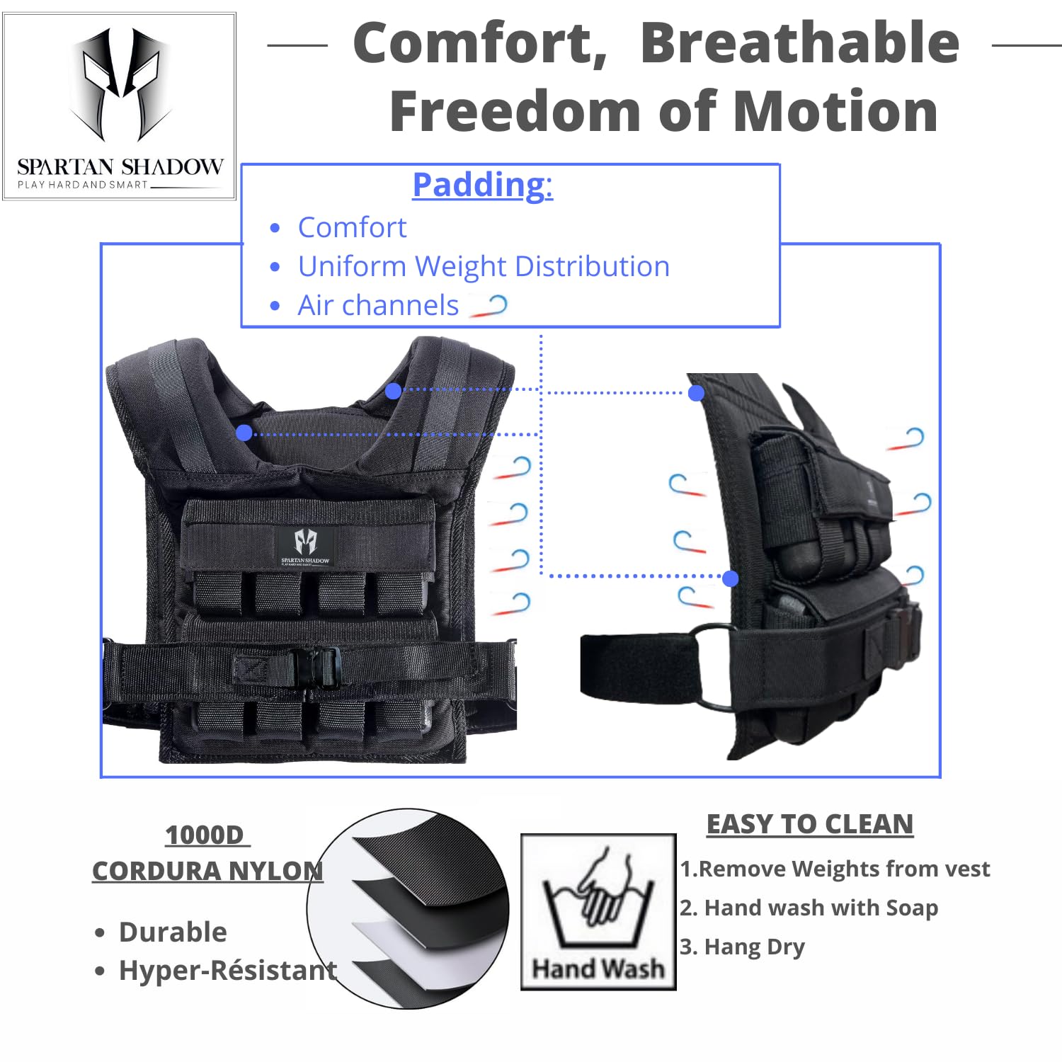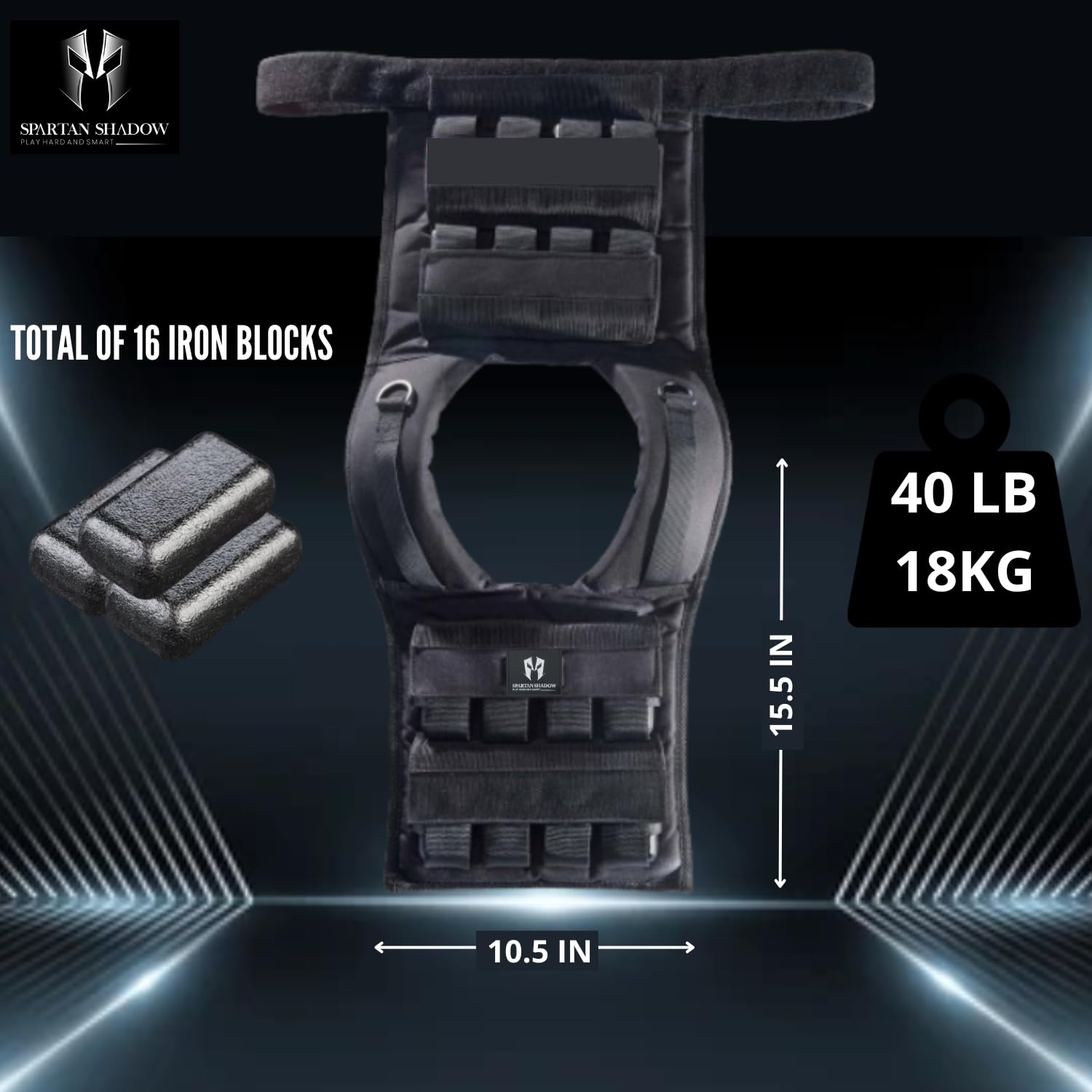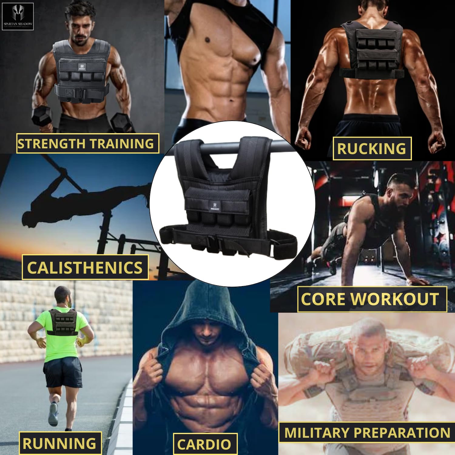 - š SHAPE YOURSELF into a Top-Level A-Player Athlete. 40 lb weighted vest develops your muscle power, strength, speed, alertness, stamina and conditioning like never before. This running weight vest will increase the intensity of your workouts and resistance to body weight, cardio exercises, calisthenics, home workout, Wods.Challenge yourself & impress your teammates! Become the leader of your team. Game changer Gym at home. Get noticed for your athletic performance using Spartan Shadow equipment recognized and recommended by top coaches! Don't believe them - Test it and test yourself! Running etc.. "Wait till you see the final transformation!"