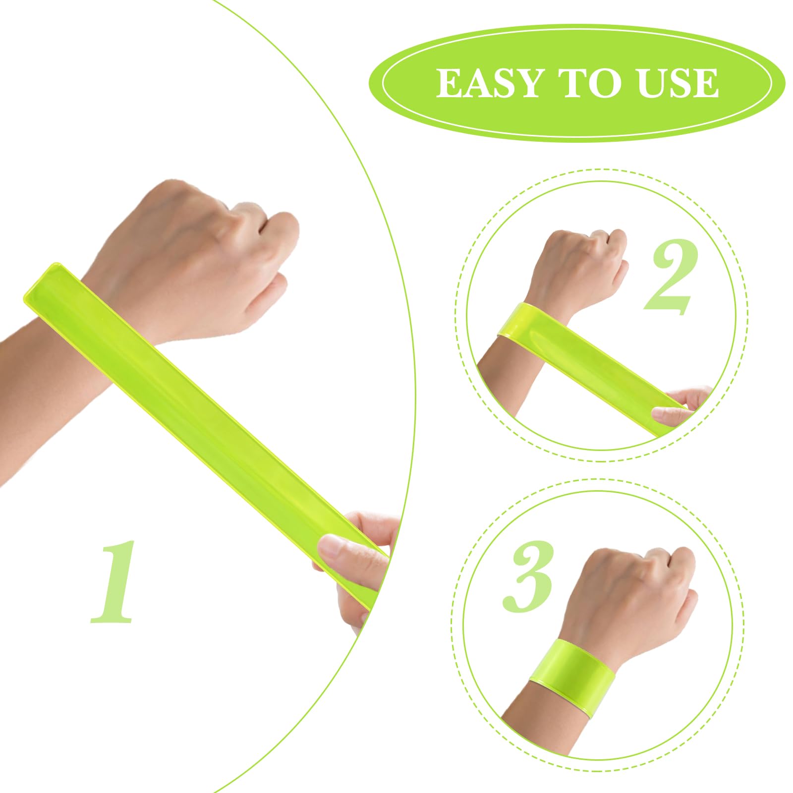 - 40 PCS Reflective Bands Dimension: 11.81*1.18 inch (30*3 cm), Good for wristband or foot ring,Reflective Bands clicks on the wrist or leg wrist, just lightly tap the wrist, and the strap will automatically roll, which is very convenient.