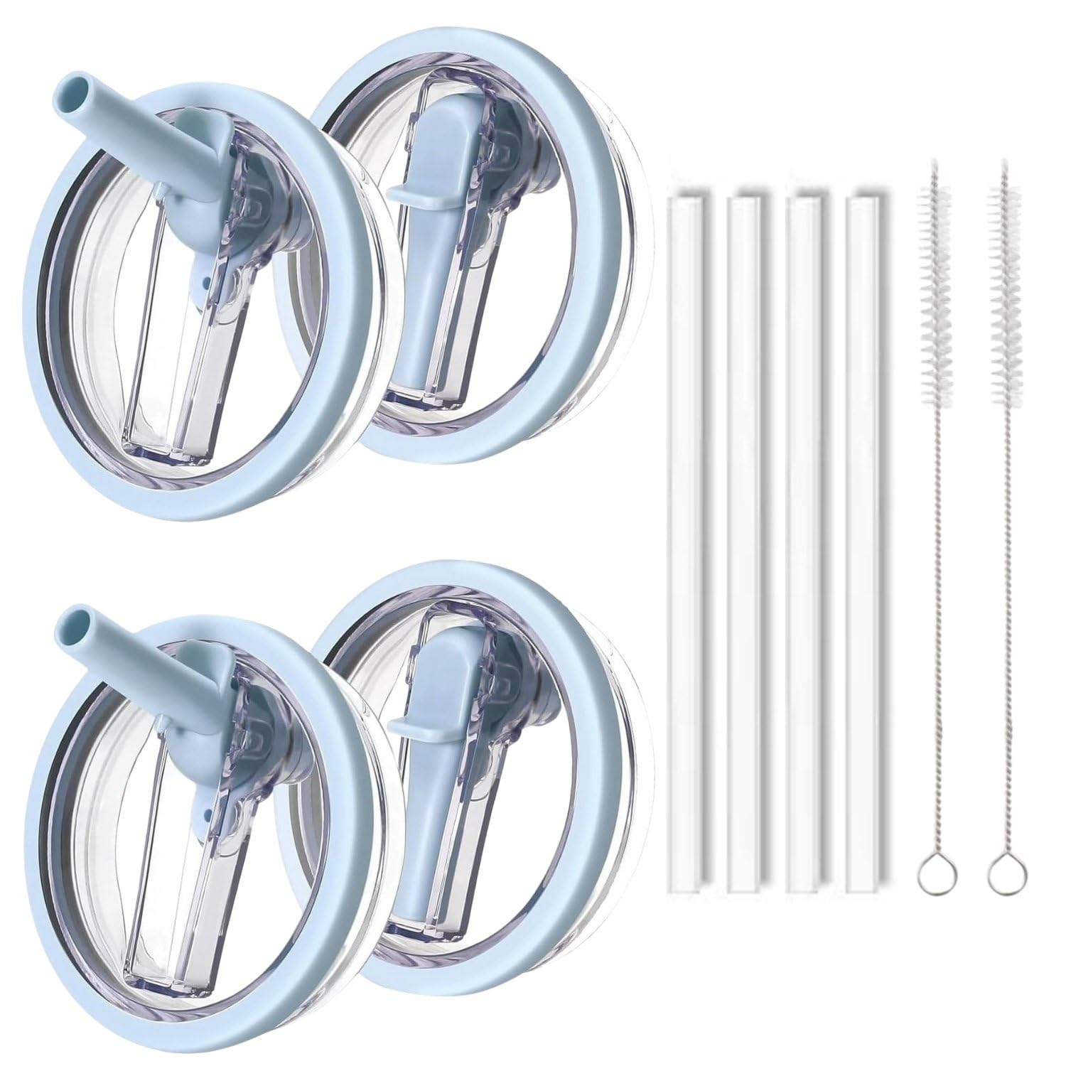 40oz Flip Straw Leak Proof Lid for Stanley H2.0 Quencher,4 Pack Tumbler Lid Replacement 40 oz for Stanley Cup Accessories ProTour,No Spill Proof Straw Cover for Stanley Accessories(Light Blue)