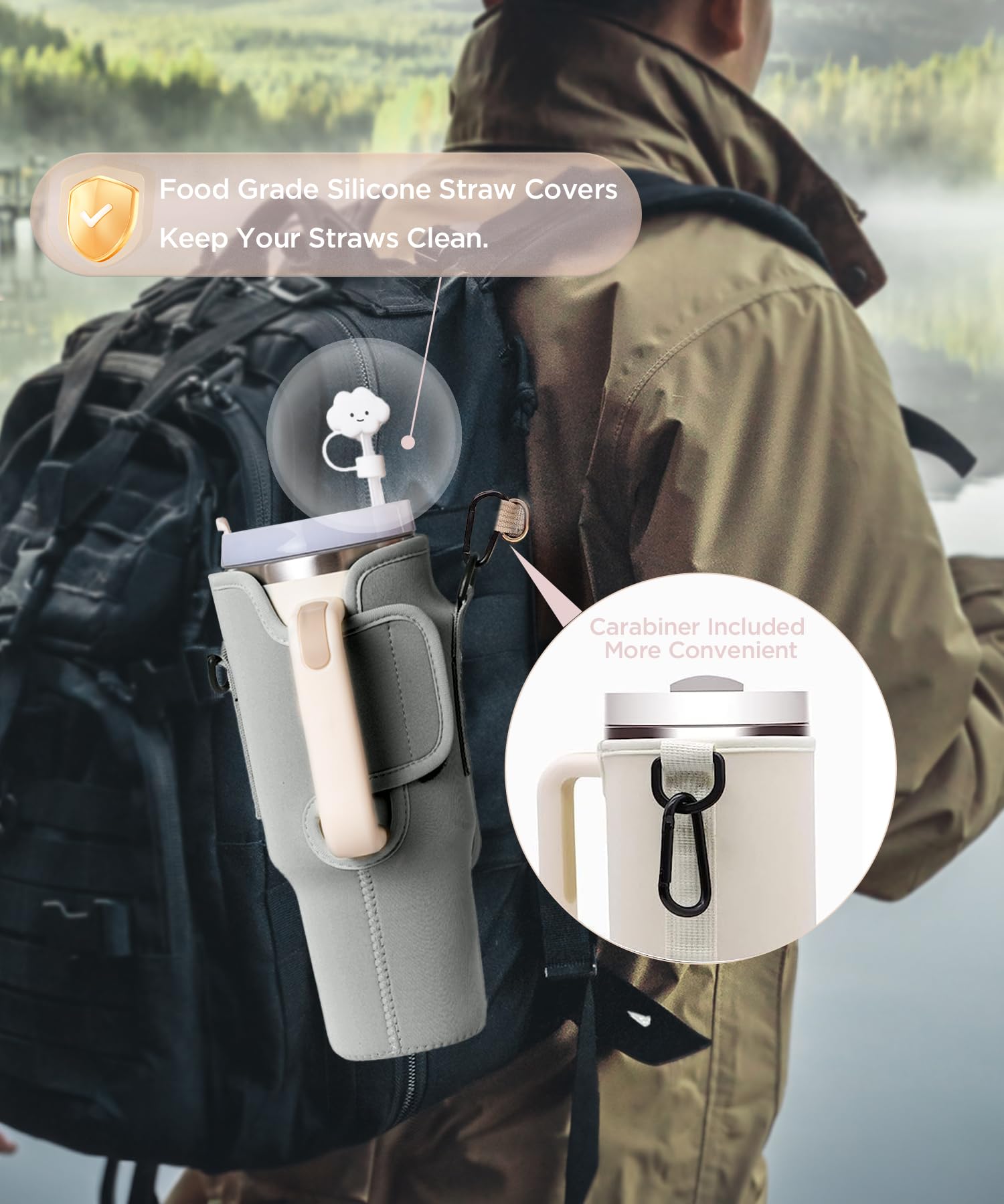 - š„¤ćBonus with Straw Cover and Carabiner ClipćComing with a straw cap for stanley cup straw, which can prevent the straw from being contaminated by dust in the air, keeps the straw and cup hygienic, let you drink with confidence anytime. and for stanley cup pouch is equipped with a carabiner clip to carry keychains and other accessories.(Noteļ¼Due to long term transportation, There is maybe slight odor, don't worry, the odor will dissipate in a few hours in a ventilated place .ļ¼