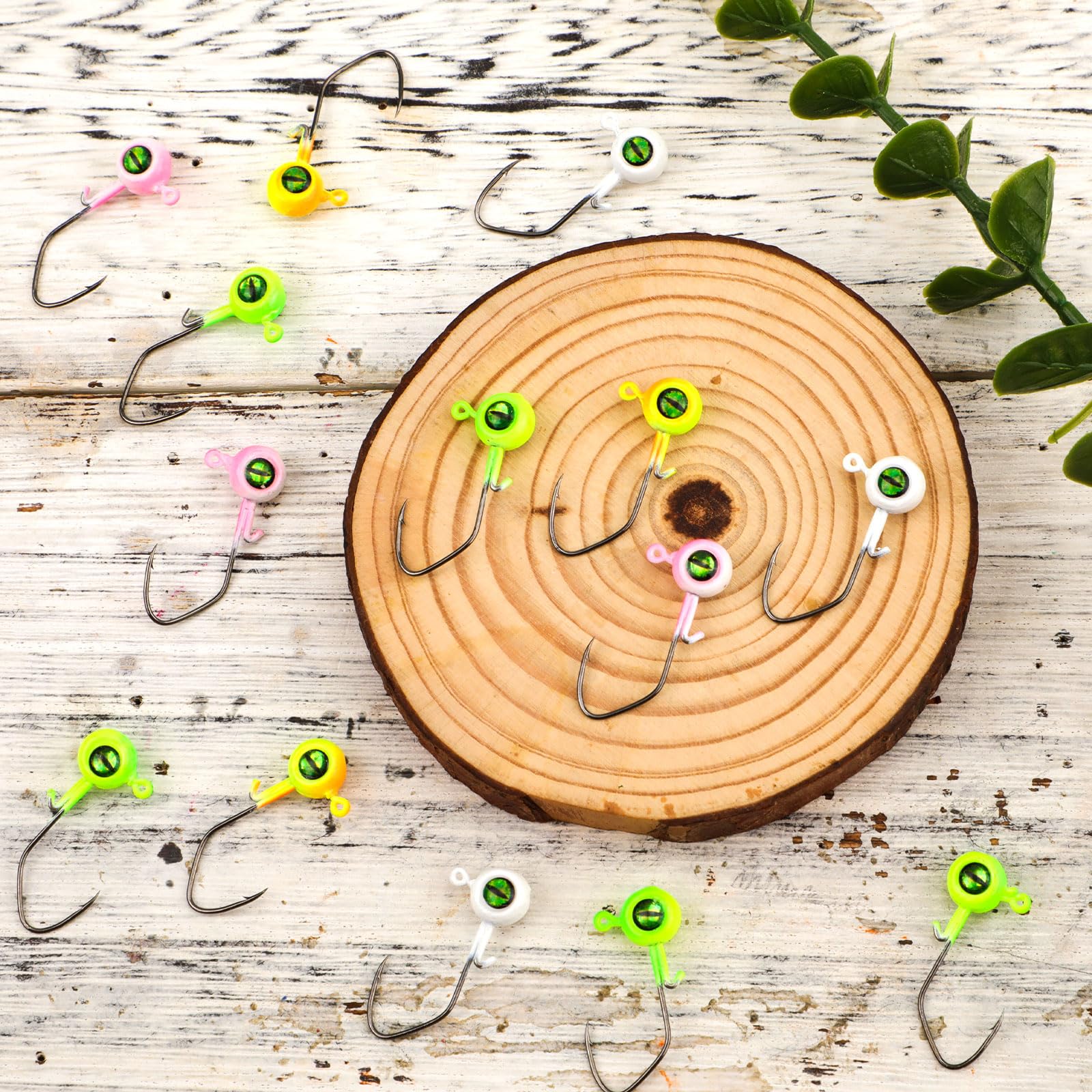 - Eye-Catching 3D Eyes: Fishing jig head with realistic 3D eyes and bright colors, enhancing the bait's visual appeal and attracting more bites from fish. The lifelike eyes create a natural presentation, increasing your chances of landing a big catch.