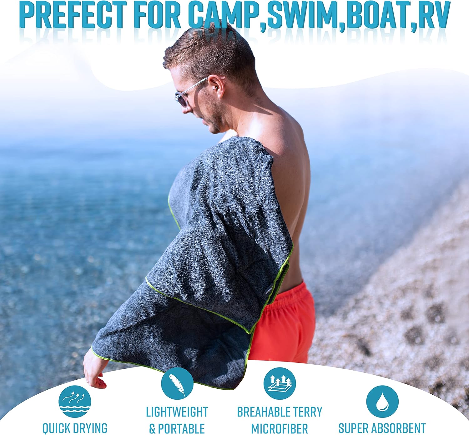 - 【Strong Water Absorption and Quick Drying】This is the most absorbent of all towels and is ideal for swimming, sailing, beach and other water sports,and can be air dried and reused in a short time.Of course, this is also a very perfect household towel, which is similar to a cotton towel but more functional.