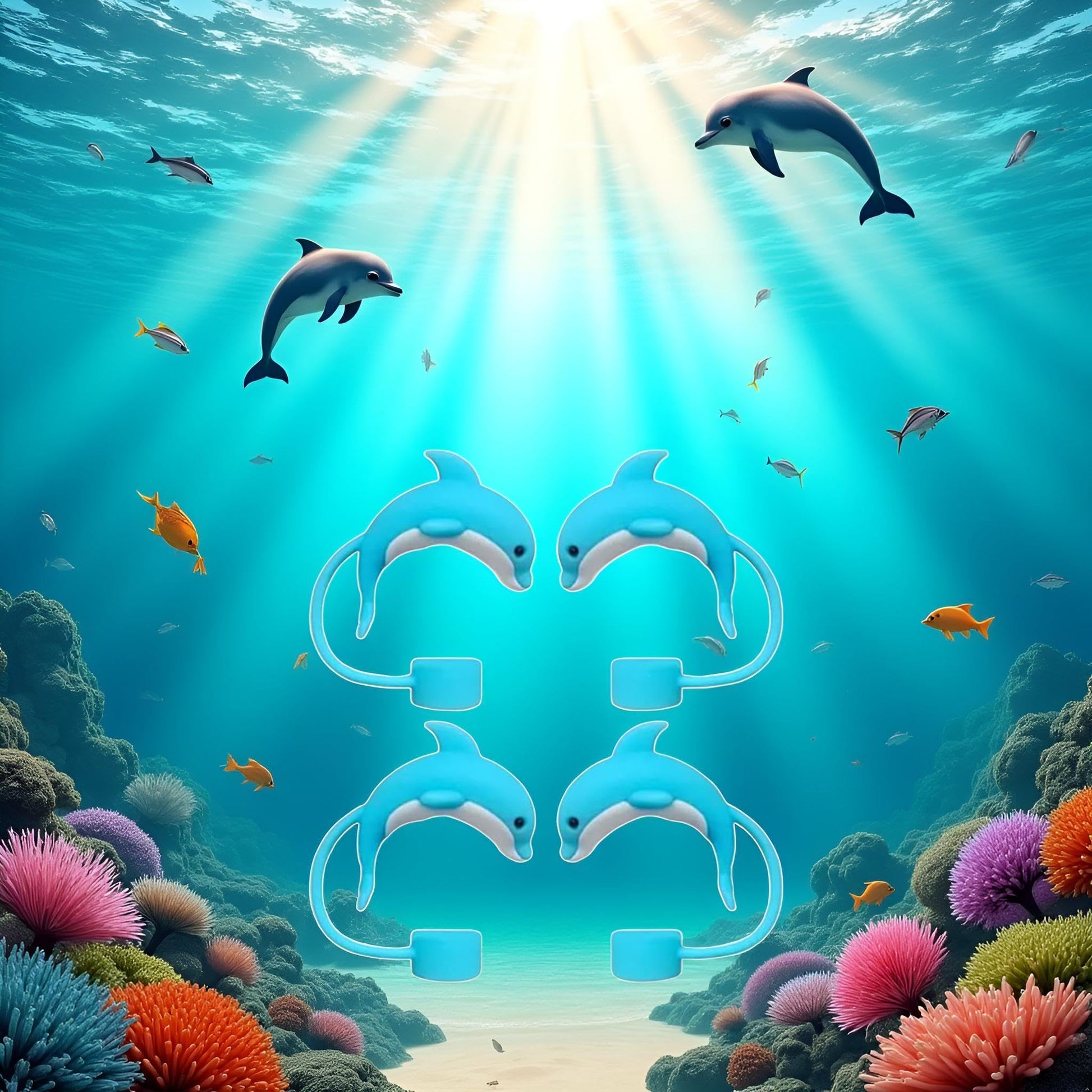 4PC Dolphin Straw Cover for Stanley Cup, 10mm Silicone Straw Covers Cap for Stanley Cup Accessories, Cap Stopper for Reusable Straws Tip Lids