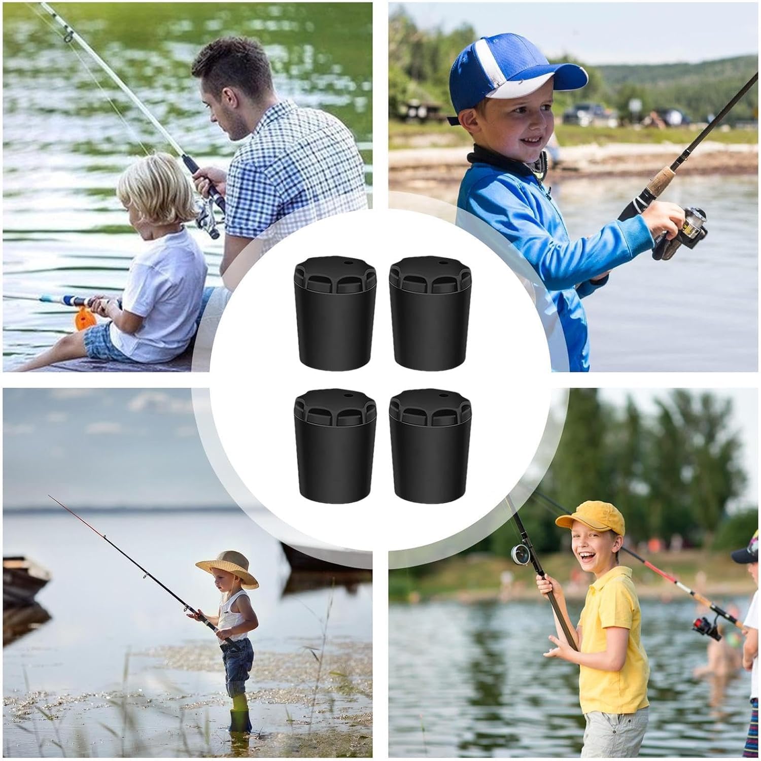 - Versatile: Set of 4 black silicone fishing rod butt cushions designed as end caps and seat protectors for fishing rods and accessories.