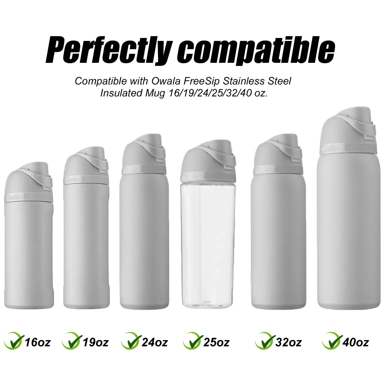 - Compatibility: Compatible with Owala 19oz 24oz 32oz 40oz, Owala FreeSip 25oz Clear Tritan plastic water bottle. Please note that our product is not sponsored or endorsed by, or affiliated with the brands it fits, including Owala.