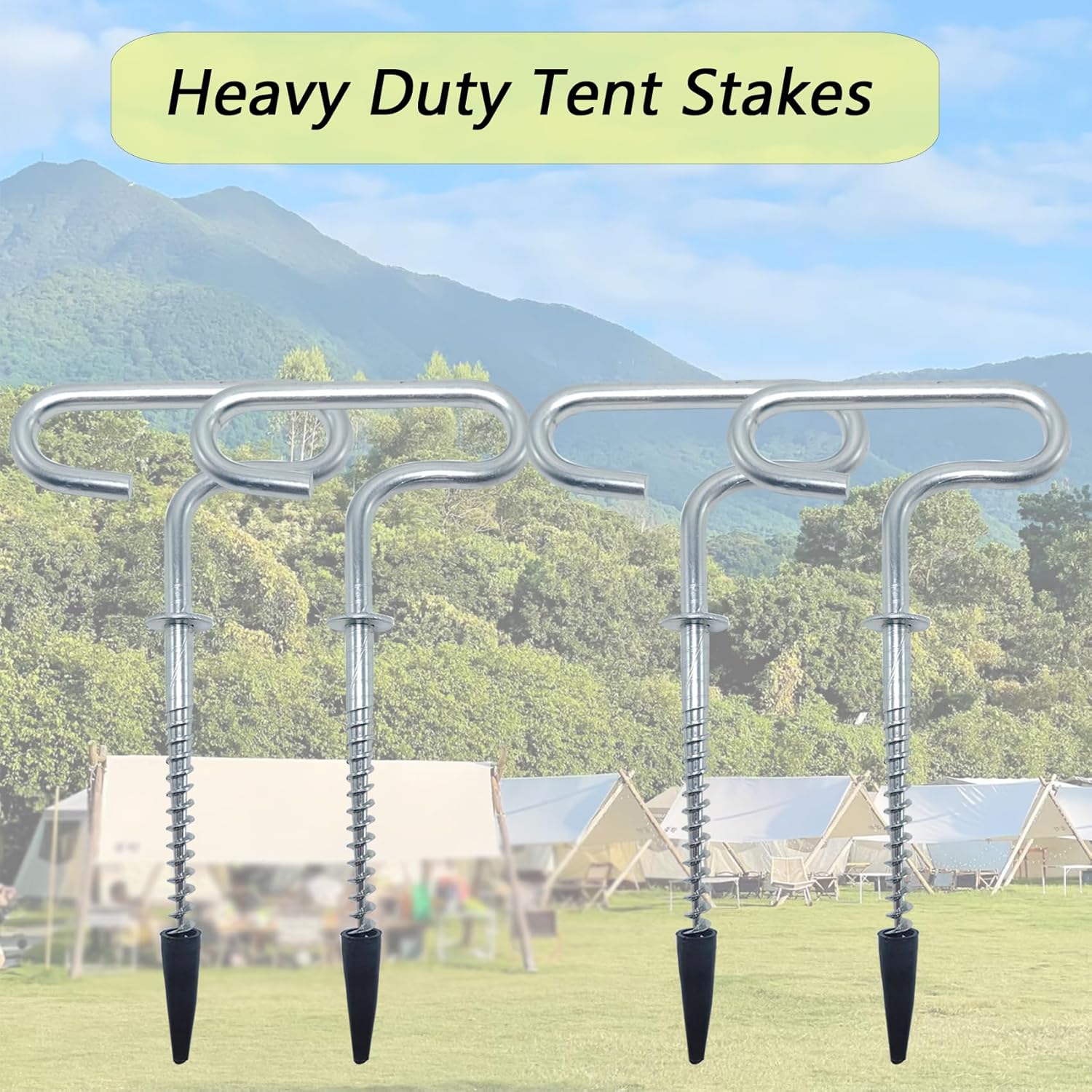 4Pcs Heavy Duty Tent Stakes, 18cm Ground Anchors, Threaded Peg for High Winds, Ice Fishing Shelter Nails, Metal Stake for Outdoor Summer Camping Activities, Durable Tent Fixer Spikes
