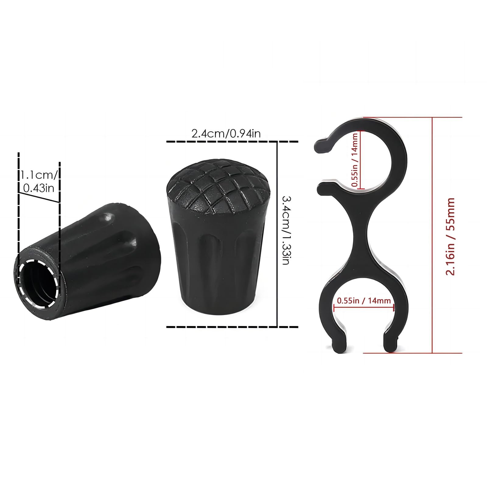 4Pcs Rubber Trekking Pole Tips - All-Terrain Accessories for Nordic Walking Poles with 11mm/0.43" Inner Diameter. Compatible with Most Standard Trekking/Hiking/Walking Poles/Sticks