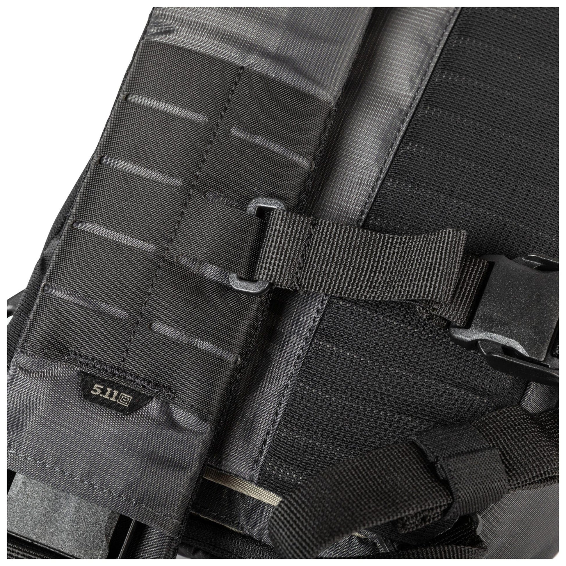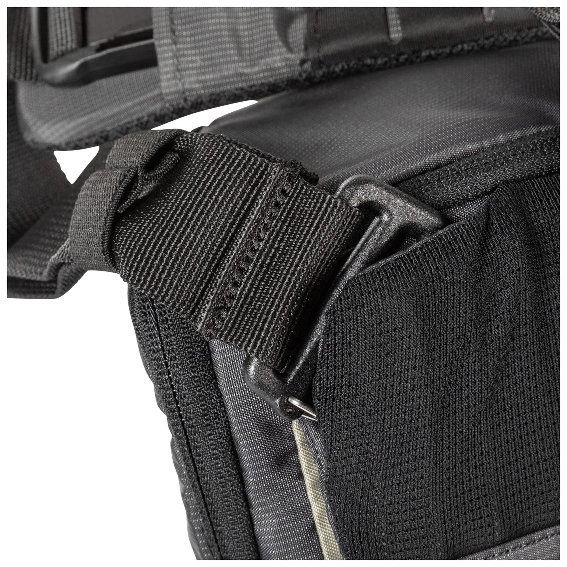 - Ambidextrous, removable single shoulder strap with quick release buckle, laser-cut MOLLE, sternum strap, and crossbody strap