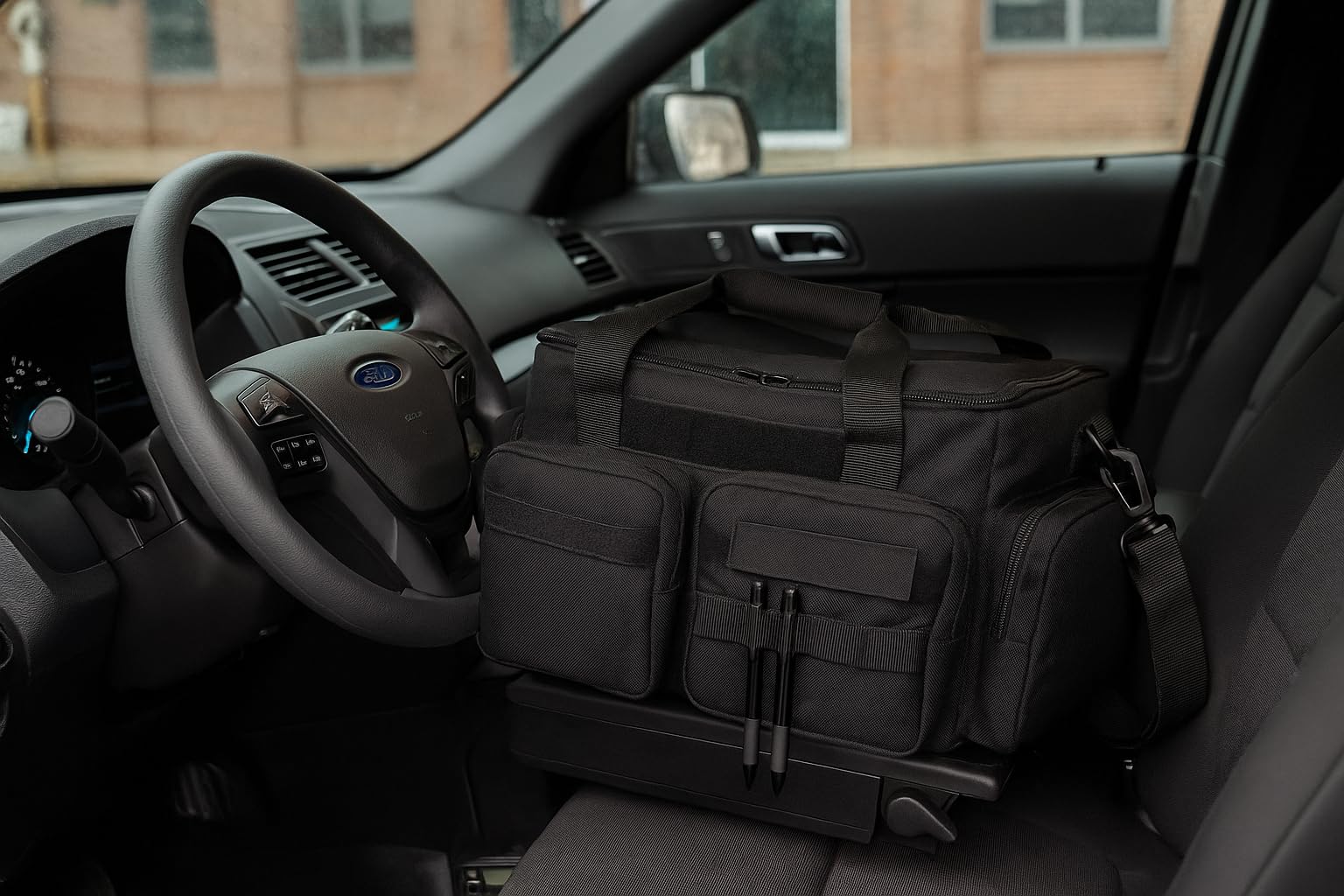 - Tactical gear bag features durable nylon carrying handles with secure closure that make for worry-free portability. With 18.5” x 8” x 12” main compartment, its size is perfect for a police car seat bag.