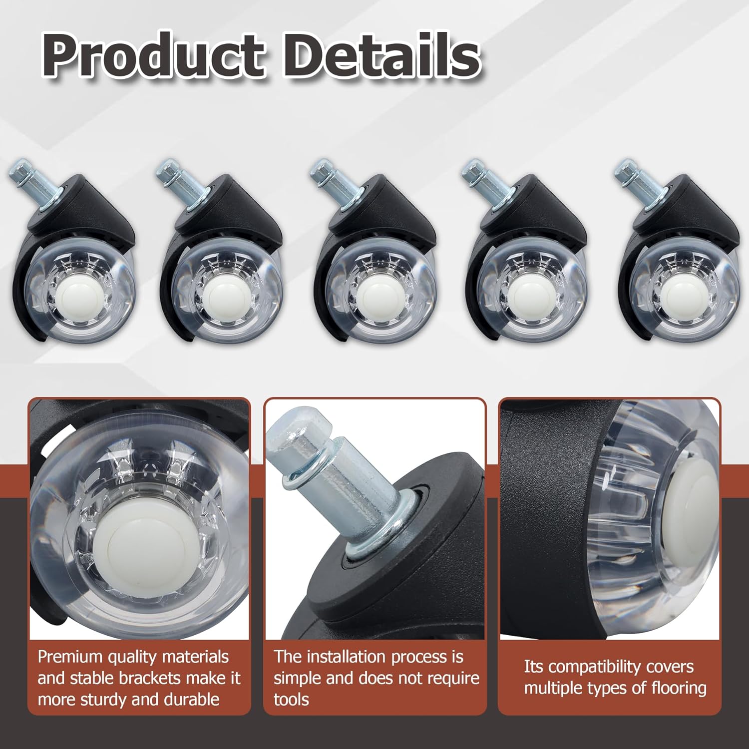 5 Office Chairs with 2-Inch 360 ° Swivel Rubber Wheels