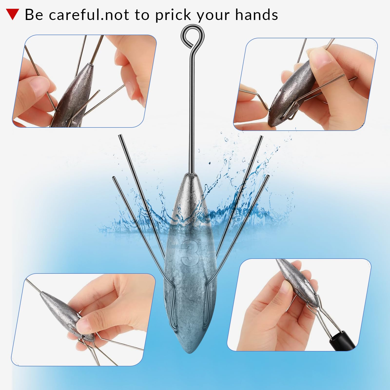 - Novel Design: Each fishing sinkers model has 4 stainless steel legs, convenient for stable casting, suitable for long-distance casting and easy to use