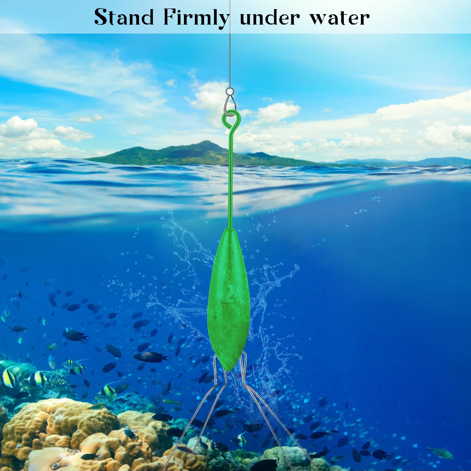 5 Pcs Sputnik Sinkers Surf Fishing Weight, Heavy-Duty Long Tail Fishing Weights Saltwater Surf Casting Sinkers,Fishing Weights Sinkers Spider Weights Surf Casting Sinkers(Green-2oz)