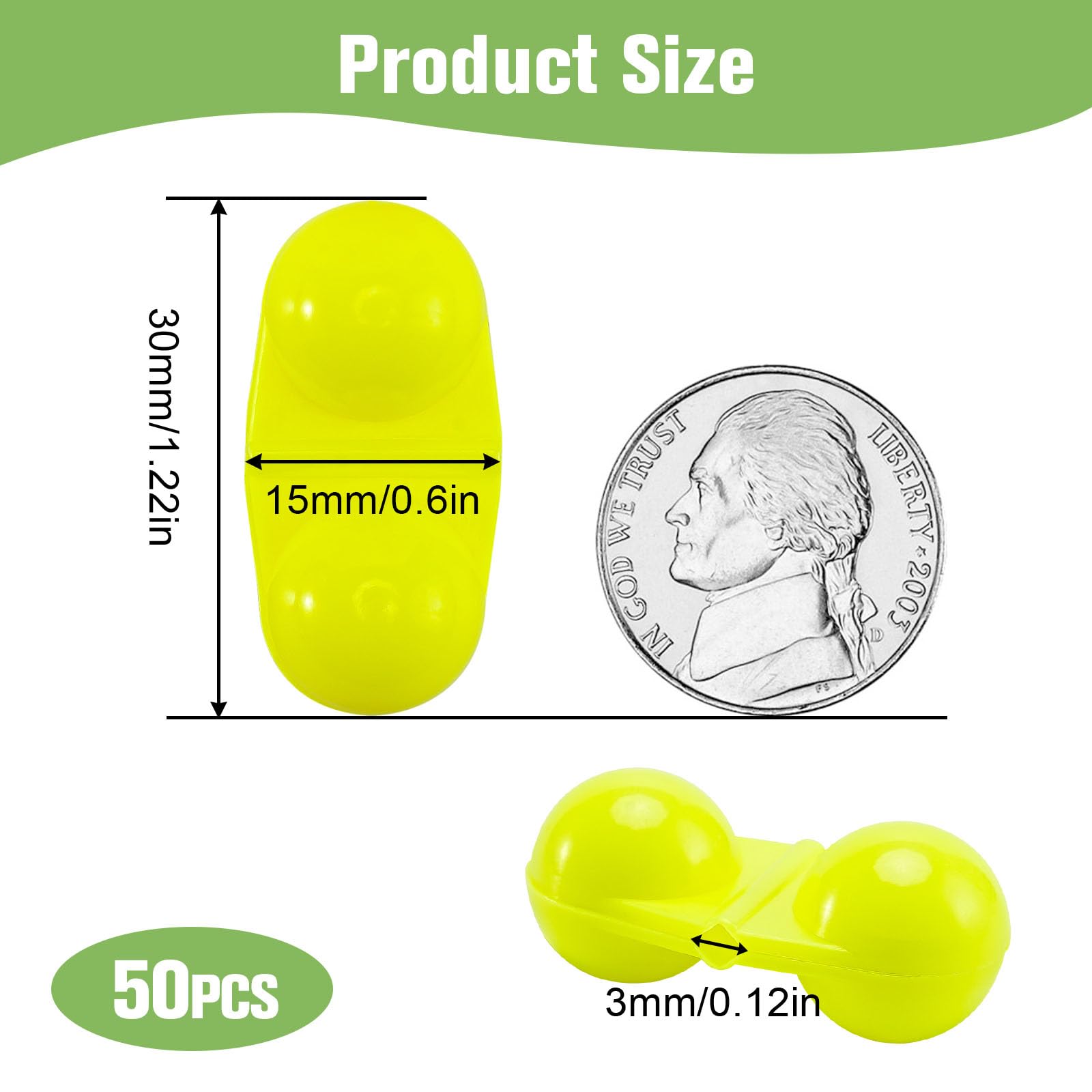- Product Size: The length of beads for fishing is about 0.6 inches/15mm, the width is about 1.22 inches/30mm, and the diameter of the center hole is 0.12 inches/3mm, which is suitable for different kinds of rods, and it is an ideal accessory for your fishing.